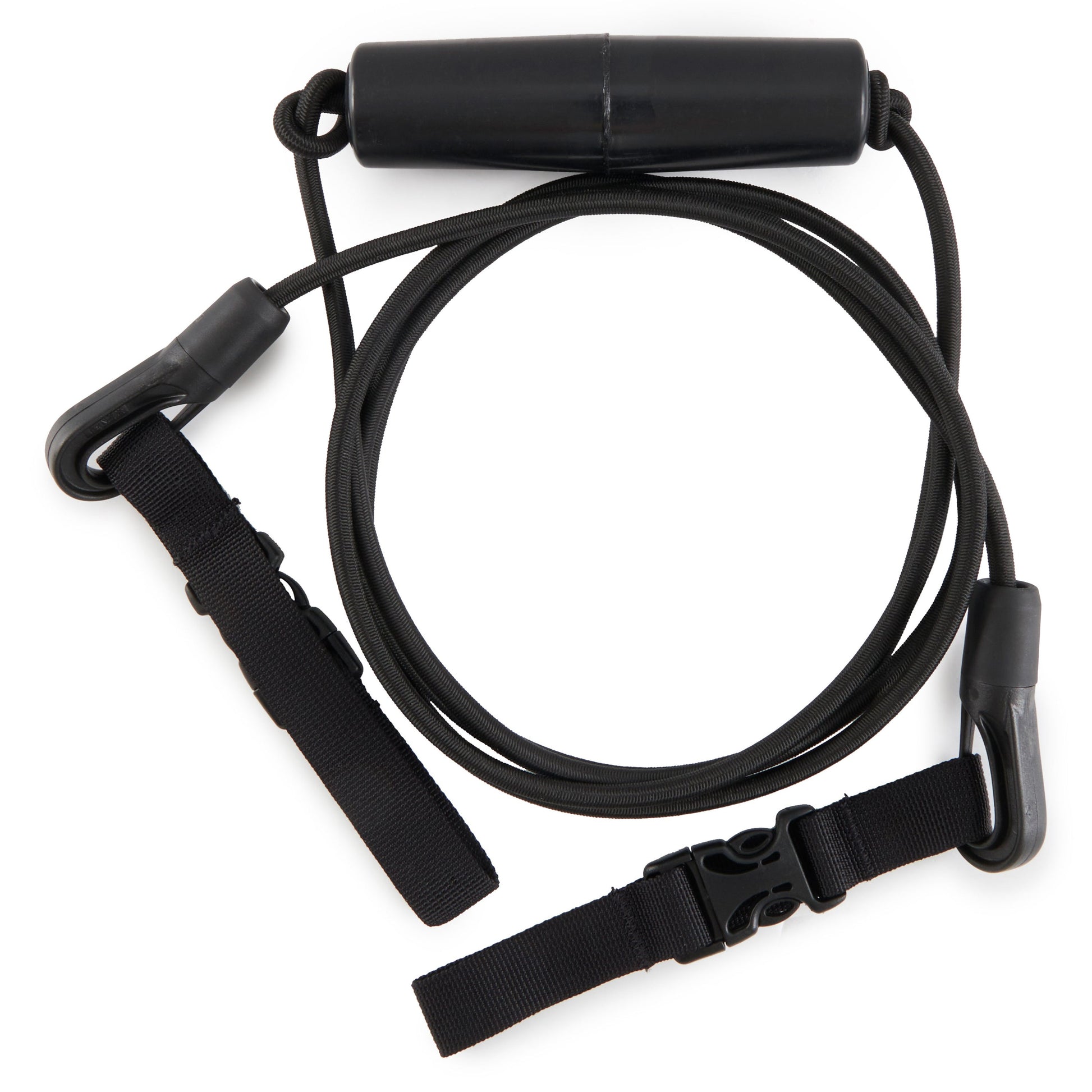 This sturdy tow rope is made of shock cord that stretches rather than snaps when you start or stop paddling. The tow rope has 2 clips and 2 strap buckles that easily and securely hold onto your cooler's handles.
