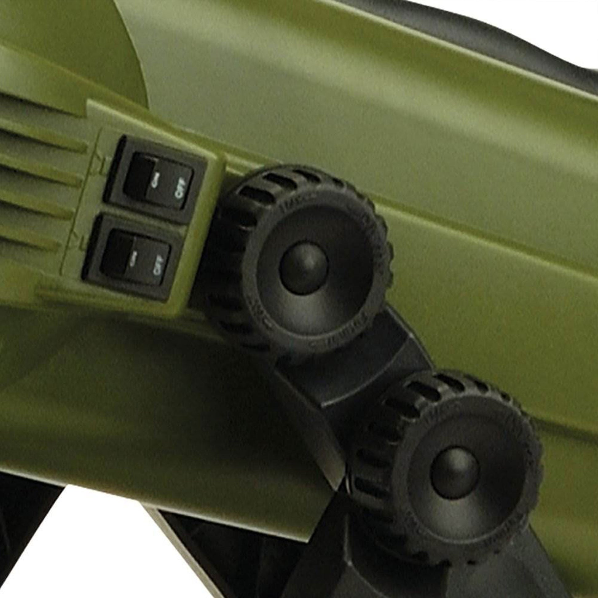 This spotlight features an 18 million candle power light output, perfect for providing ample illumination when on a camping trip, out on a boat, or enjoying an evening on your deck. The flashlight uses a Philips 130/100 watt H4 Halogen bulb with 2 levels of power adjustment, so you'll always have the amount of lighting you need. You can recharge the lamp with either the AC/DC adapter or 12-volt DC car plug adapter, both of which are included with 2 6-volt sealed lead-acid batteries. The adjustable swivel stands so you can point the light exactly where you need it. The durable rubberized construction stands up to heavy use in any outdoor environment.