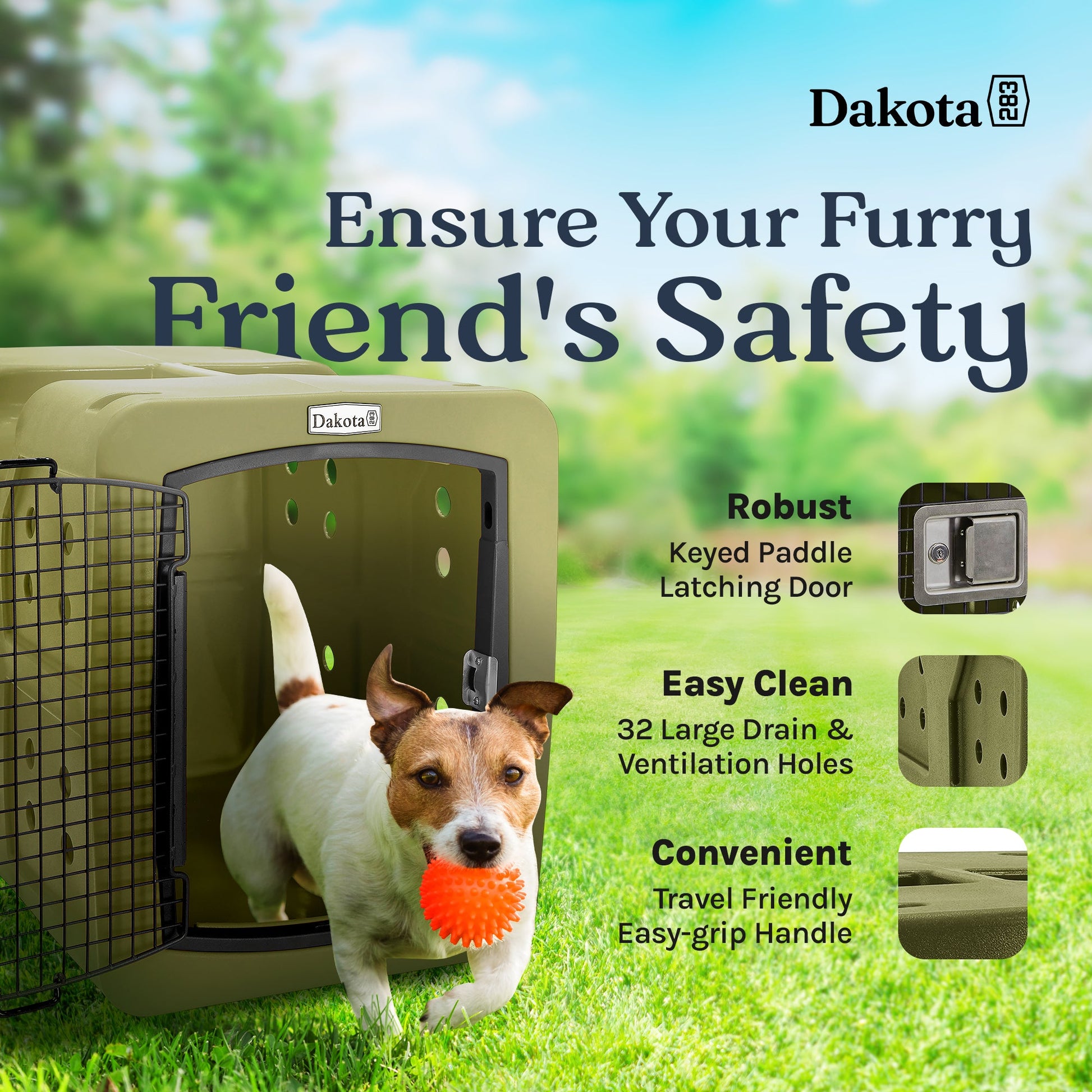 Dakota 283 G3 Medium Easy to Clean Dog Kennel w/ Handle & Latching Door, Olive