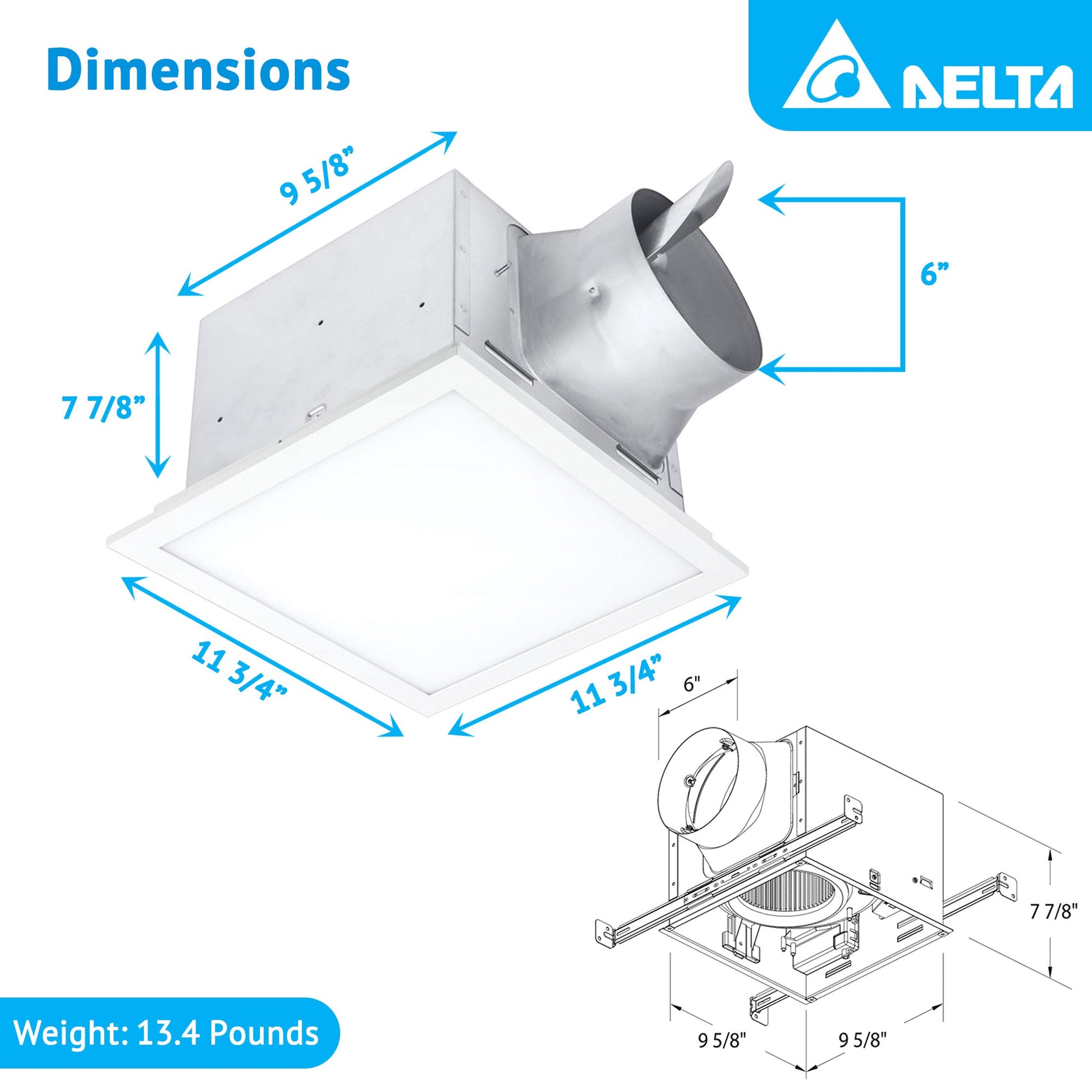 Energy efficiency is at the heart of the Delta Breez Signature, boasting an impressive 11.7 CFM per watt, significantly reducing energy consumption and lowering your utility bills. The fan includes a convenient 6-inch to 4-inch duct reducer, making installation a breeze in a variety of setups and ensuring compatibility with your existing ductwork.