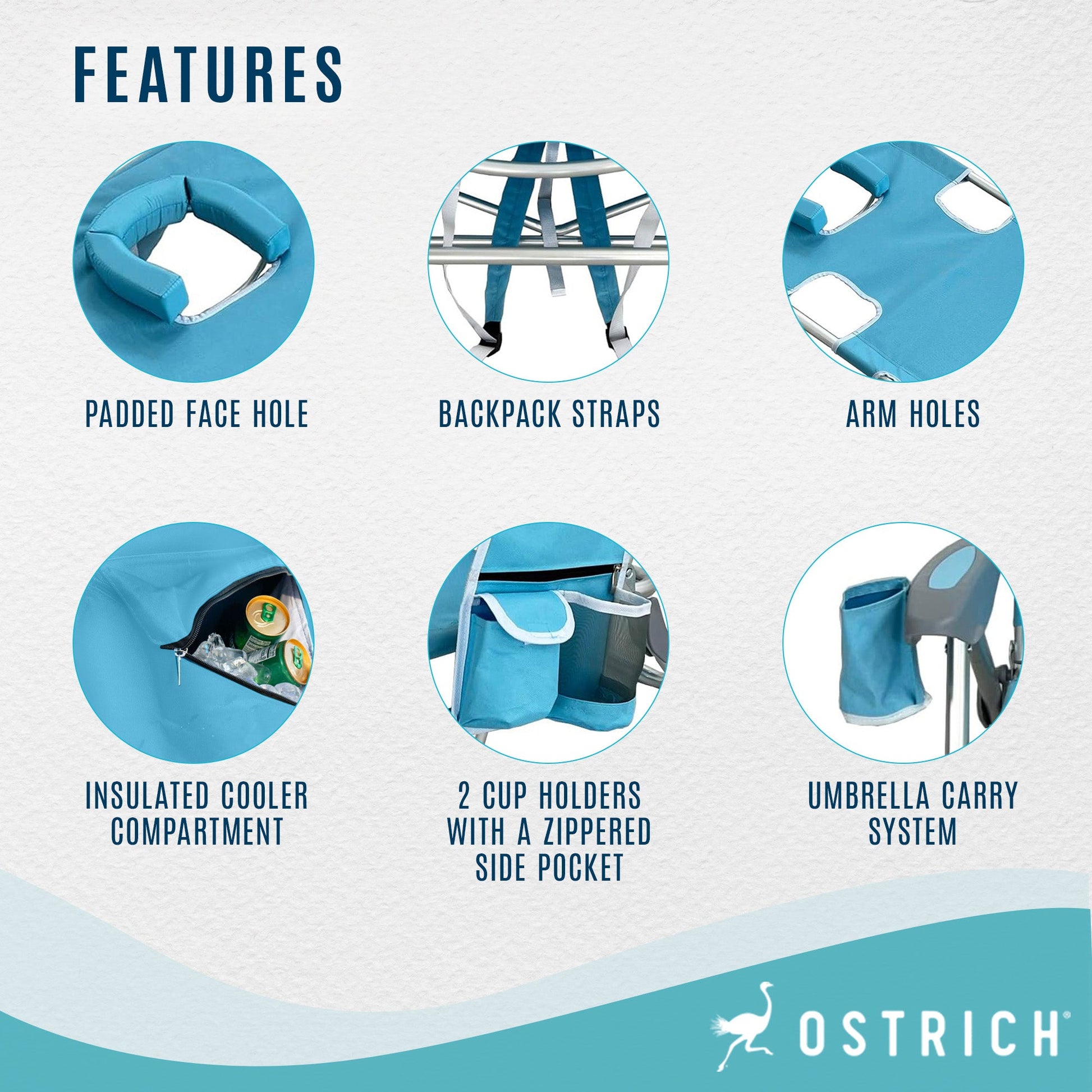 Deltess Ostrich Deluxe On Your Back Aluminum Chair with Cooler Bag, Light Blue