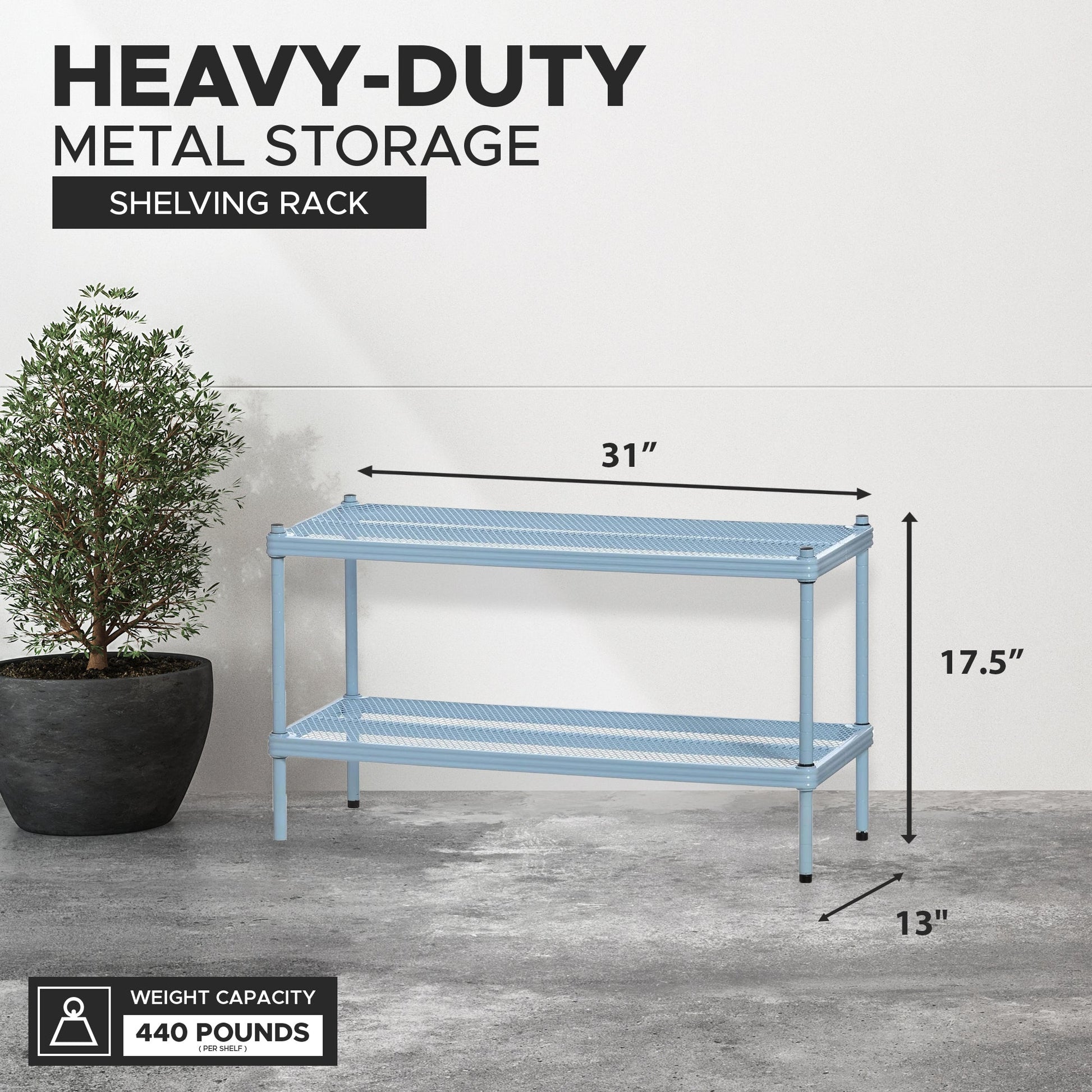 Design Ideas MeshWorks 2 Tier Full Metal Storage Shelving Unit Rack, Sky Blue
