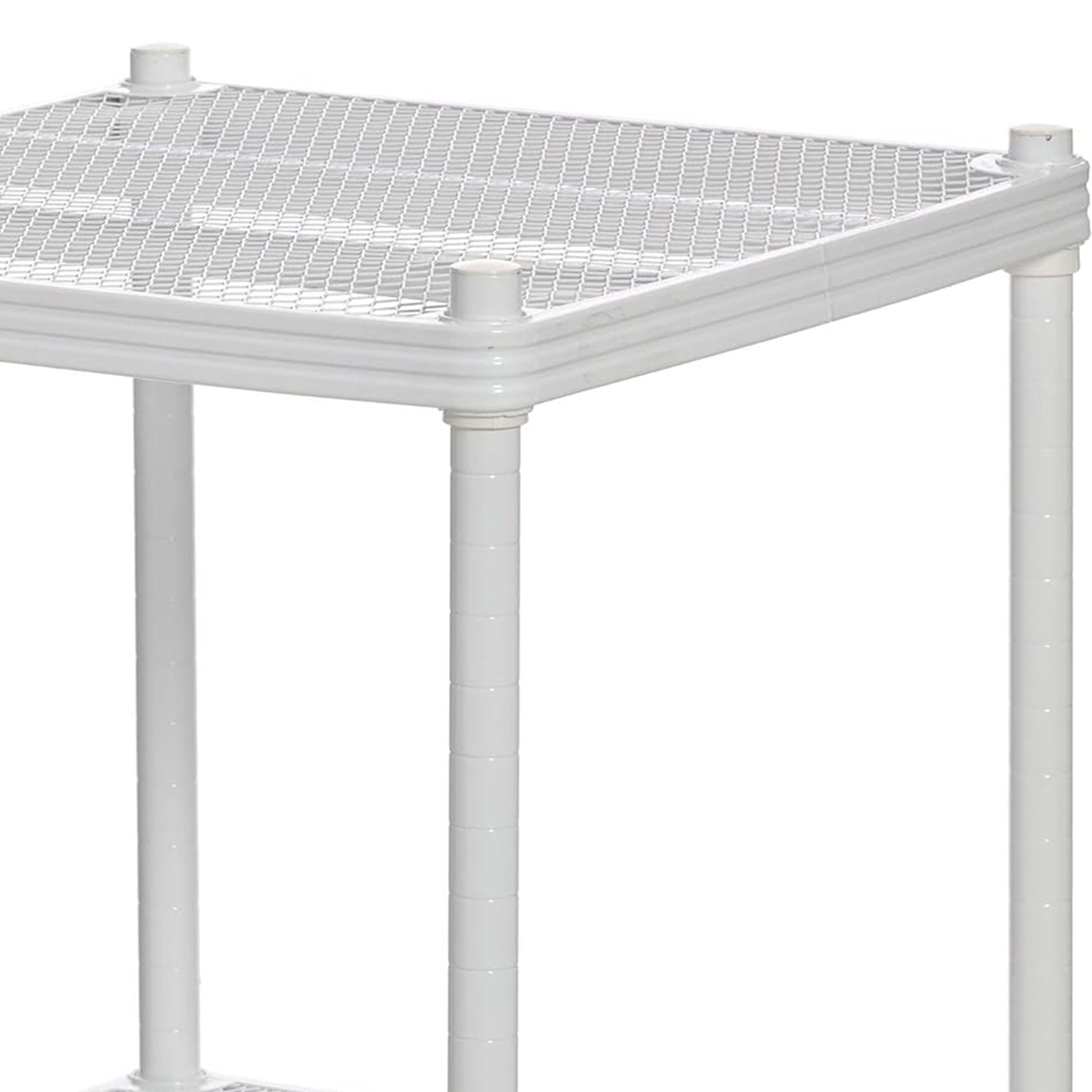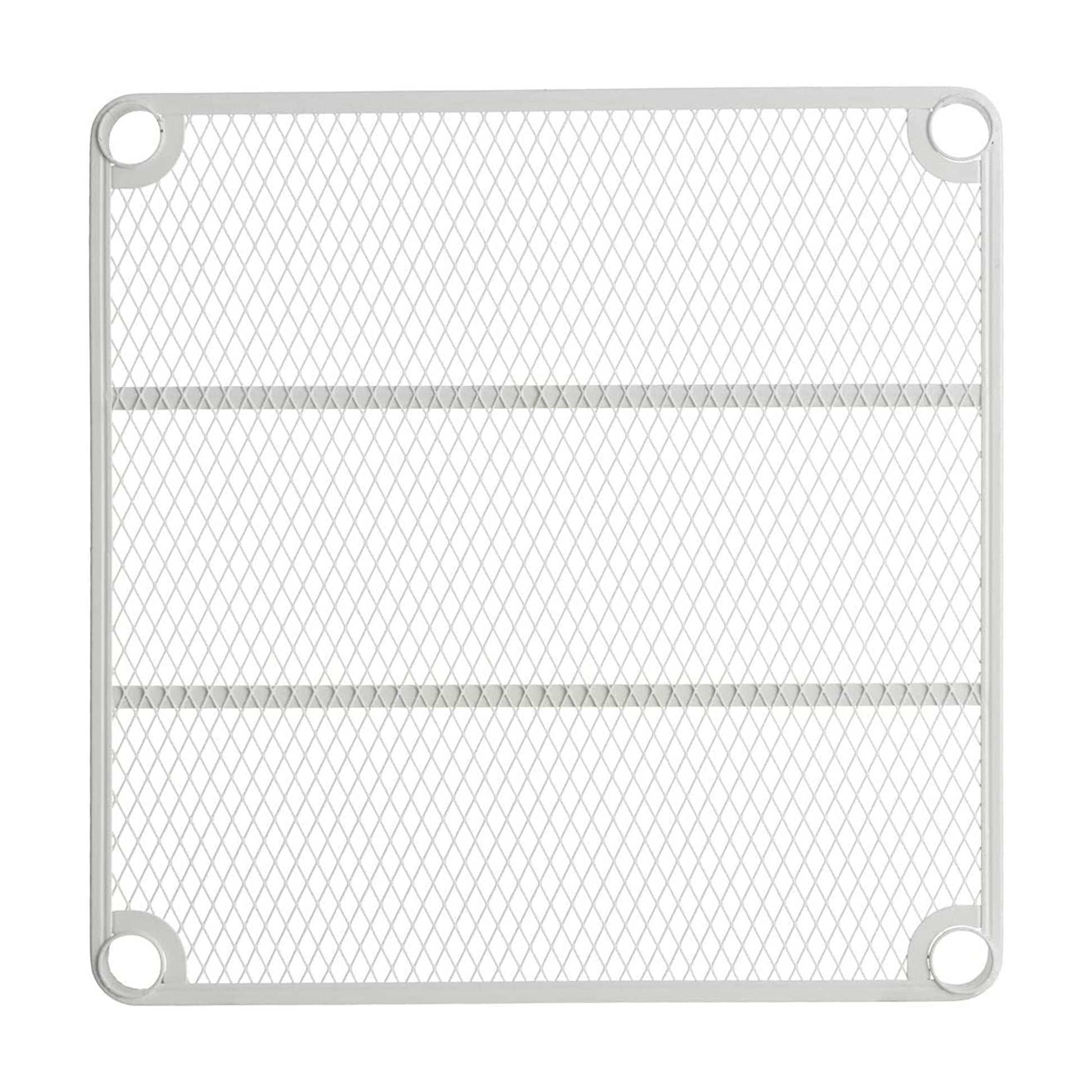 Featuring a heavy-duty steel metal mesh design and epoxy coating, each shelf from this standing shelf unit is capable of holding up to 330 pounds. With the expanded metal mesh shelving, this multipurpose display shelf rack will not let bottles, cans, or other small items fall through. The open design allows to you see your items from any angle, great for easy access. Use this shelving rack as a display for your favorite home decor, as storage for kids toys, and even for craft storage.