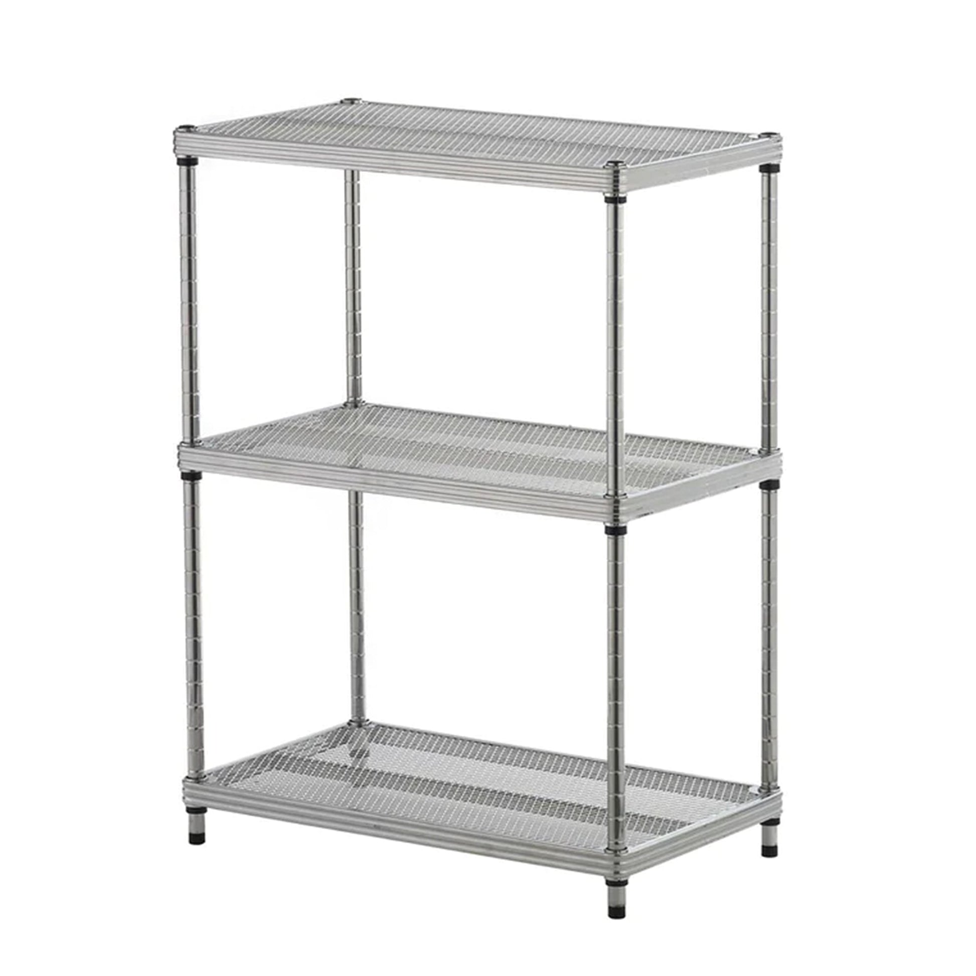 Design Ideas MeshWorks 3 Tier Full-Size Metal Storage Shelving Unit Rack, Silver