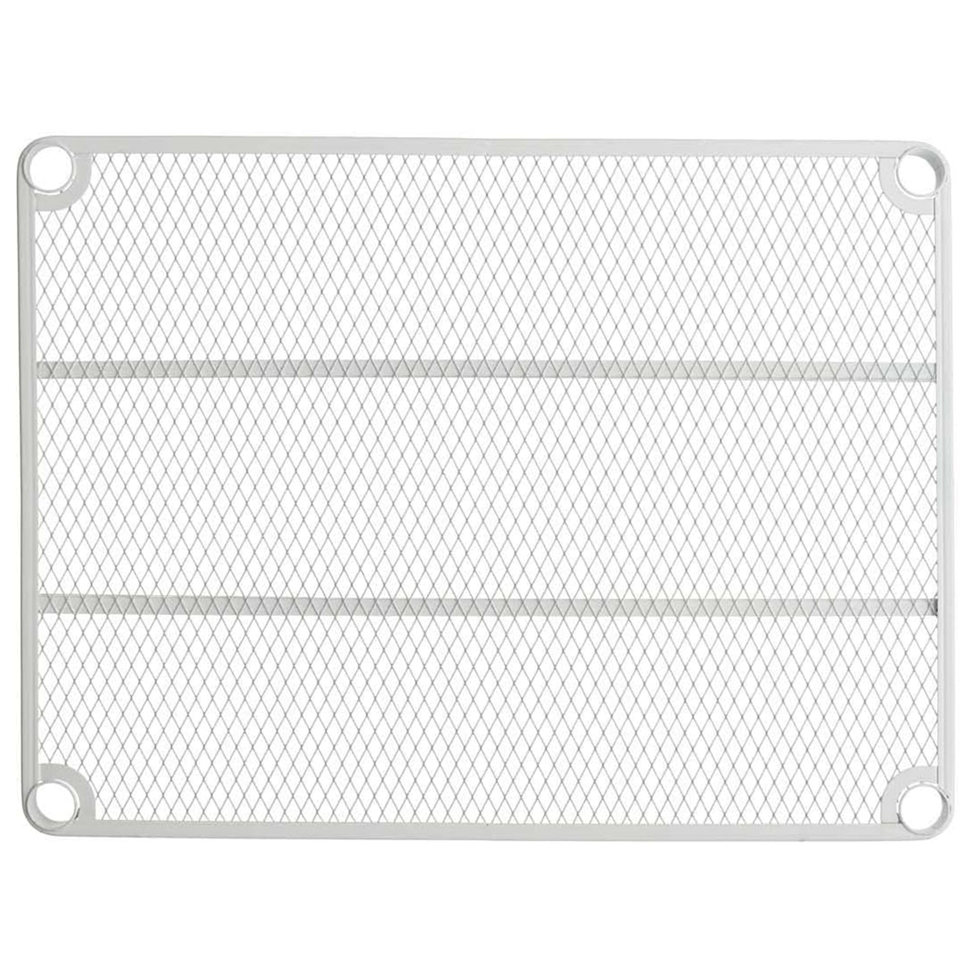 Featuring a heavy-duty steel metal mesh design and epoxy coating, each shelf from this standing shelf unit is capable of holding up to 440 pounds. With the expanded metal mesh shelving, this multipurpose display shelf rack will not let bottles, cans, or other small items fall through. The open design allows to you see your items from any angle, great for easy access. Use this shelving rack as a bookshelf, as a display for your favorite home decor, and even for craft storage.