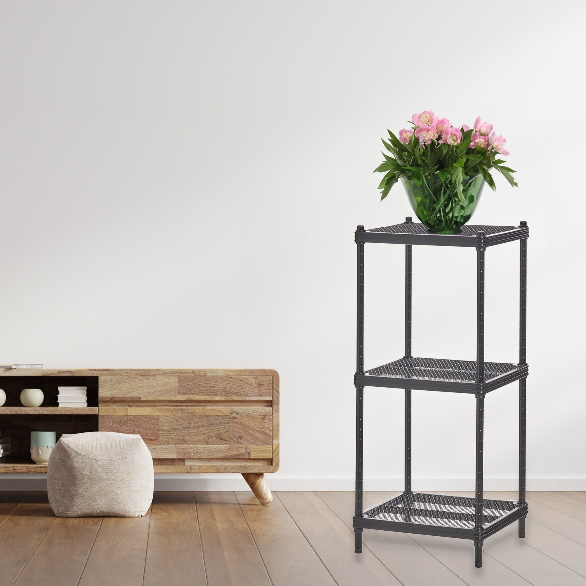 Great for apartments, storage units, basements, living rooms, and more, you can get the most out of your storage space with the Design Ideas MeshWorks 3-Tier Shelving Tower Unit.