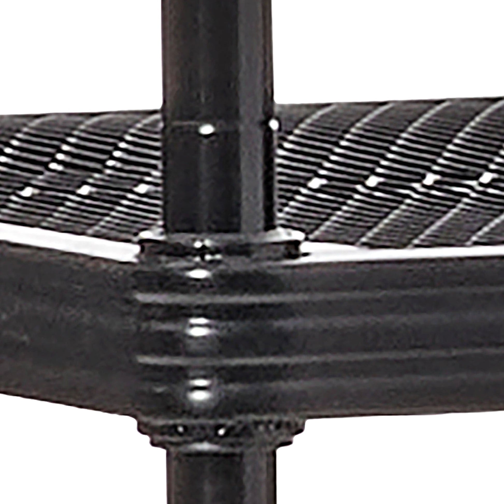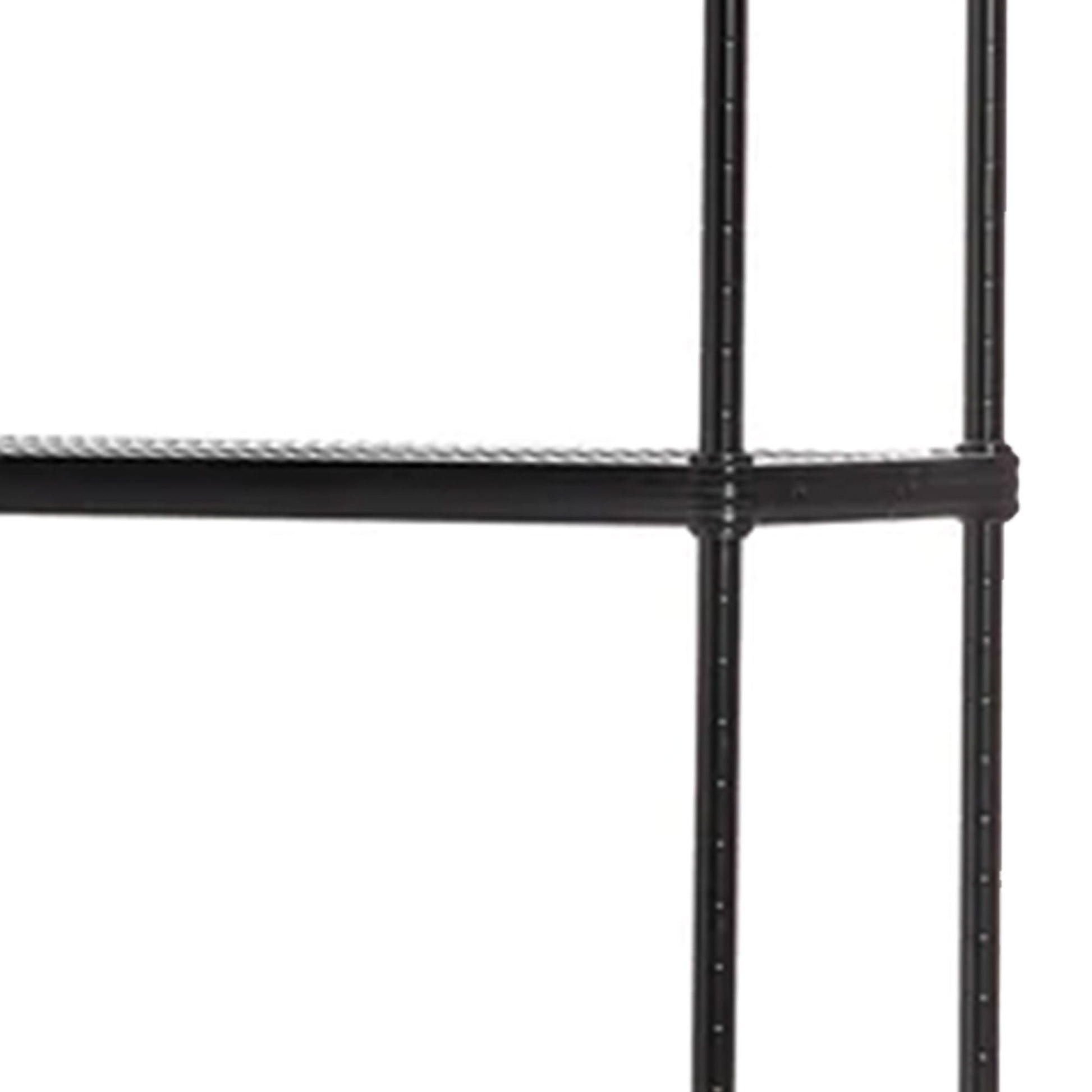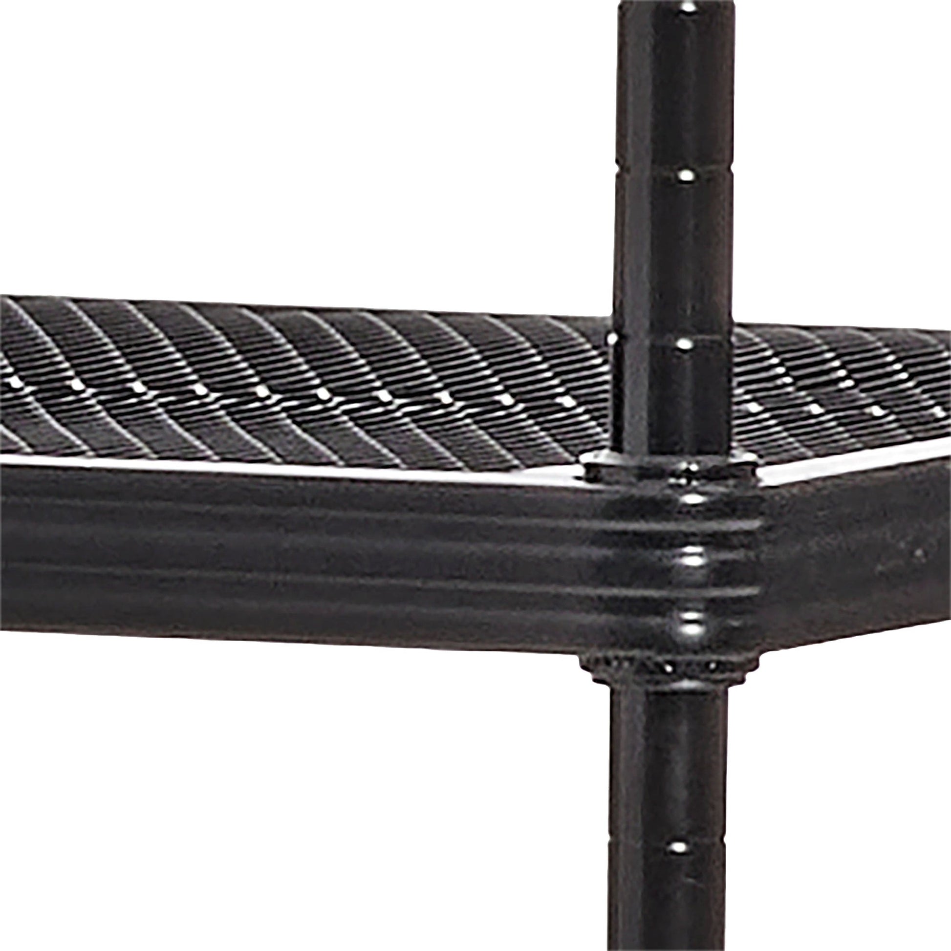 Featuring a heavy-duty steel metal mesh design and epoxy coating, each shelf from this standing shelf unit is capable of holding up to 440 pounds. With the expanded metal mesh shelving, this multipurpose display shelf rack will not let bottles, cans, or other small items fall through. The open design allows to you see your items from any angle, great for easy access. Use this shelving rack as a bookshelf, as a display for your favorite home decor, and even for craft storage.
