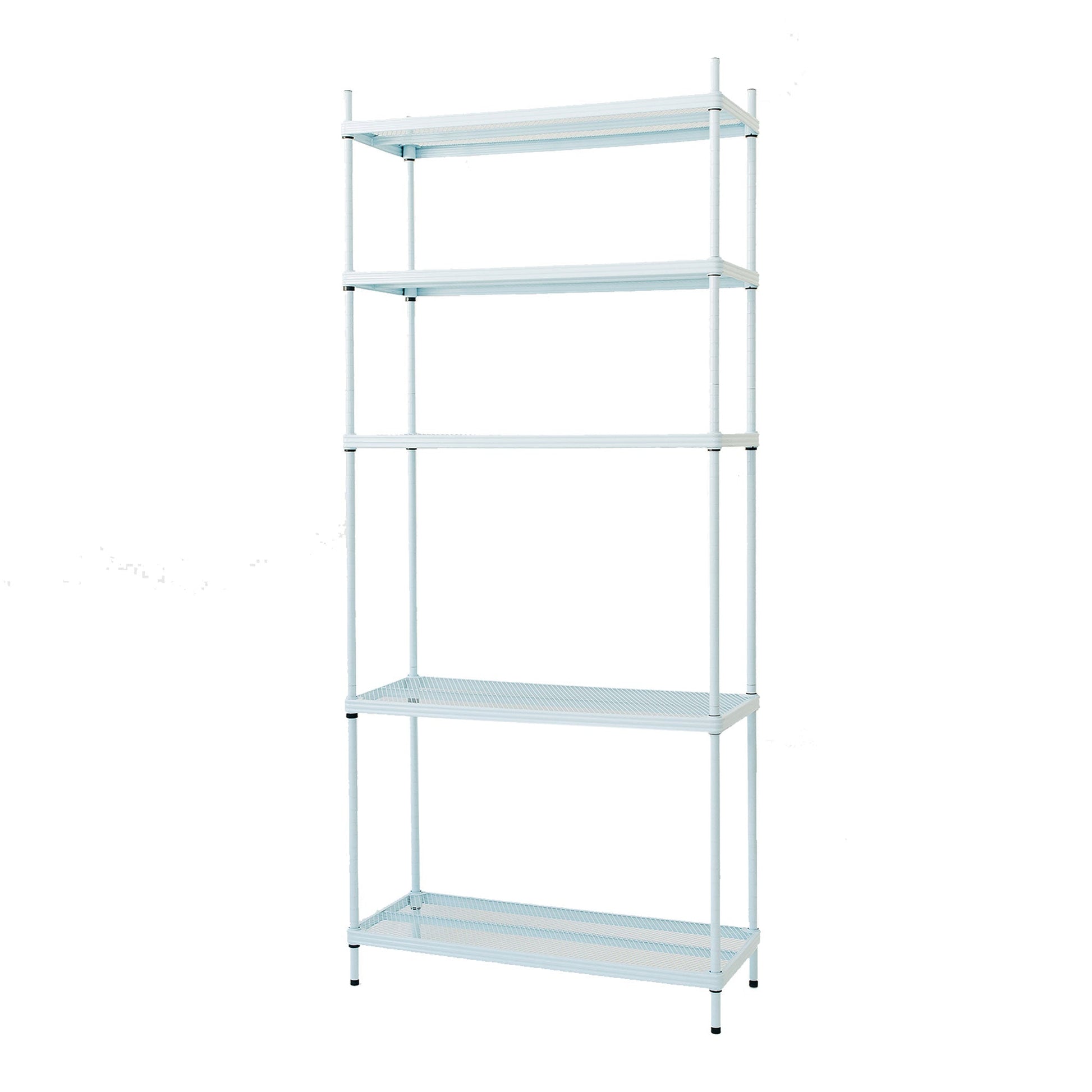 Featuring a heavy-duty steel metal mesh design and epoxy coating, each shelf from this standing shelf unit is capable of holding up to 440 pounds. With the expanded metal mesh shelving, this multipurpose display shelf rack will not let bottles, cans, or other small items fall through. The open design allows to you see your items from any angle, great for easy access. Use this shelving rack as a bookshelf, as a display for your favorite home decor, and even for craft storage.