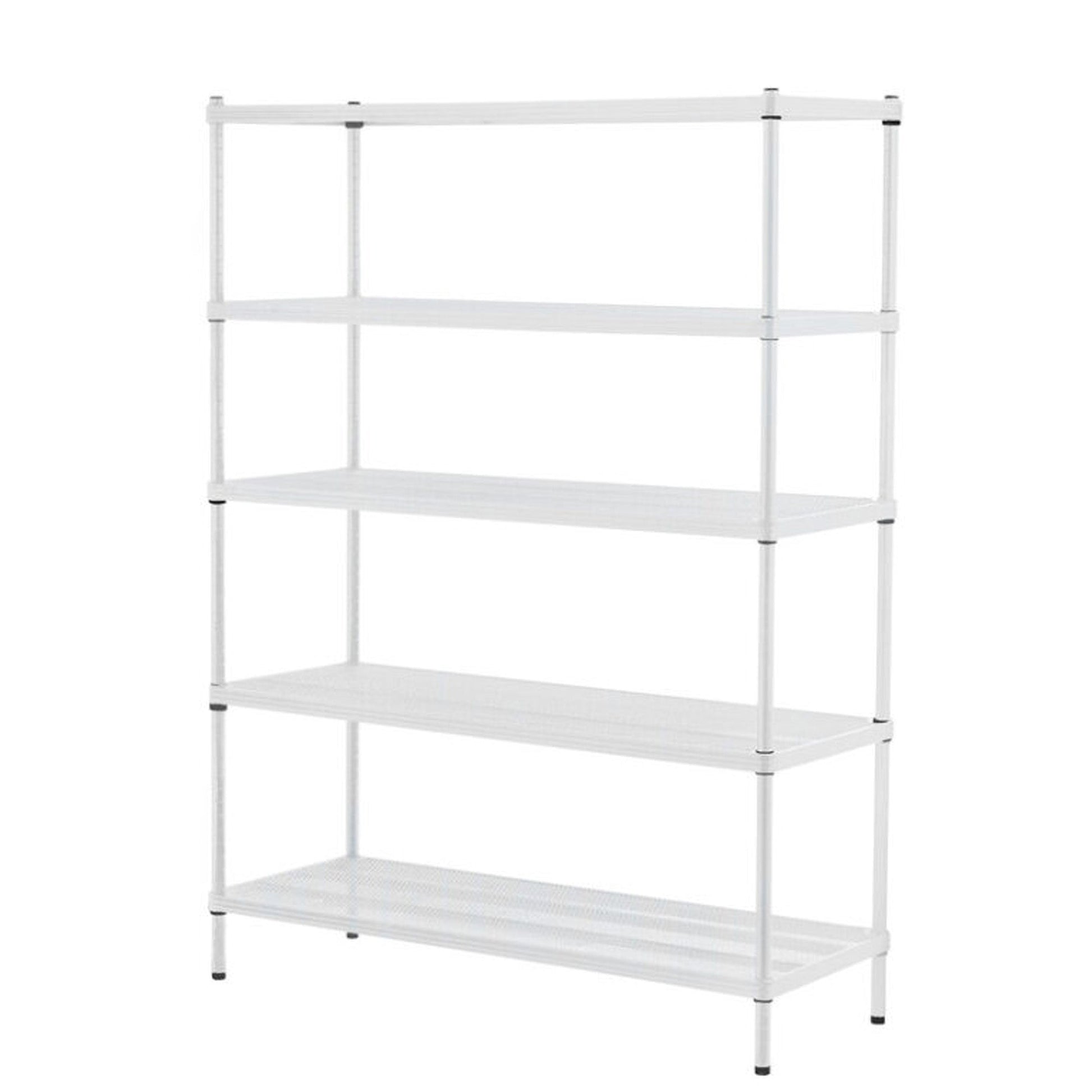 - Fulfill your organizational needs with the 5-tier shelf mesh storage unit; Perfect for your garage, kitchen, or office