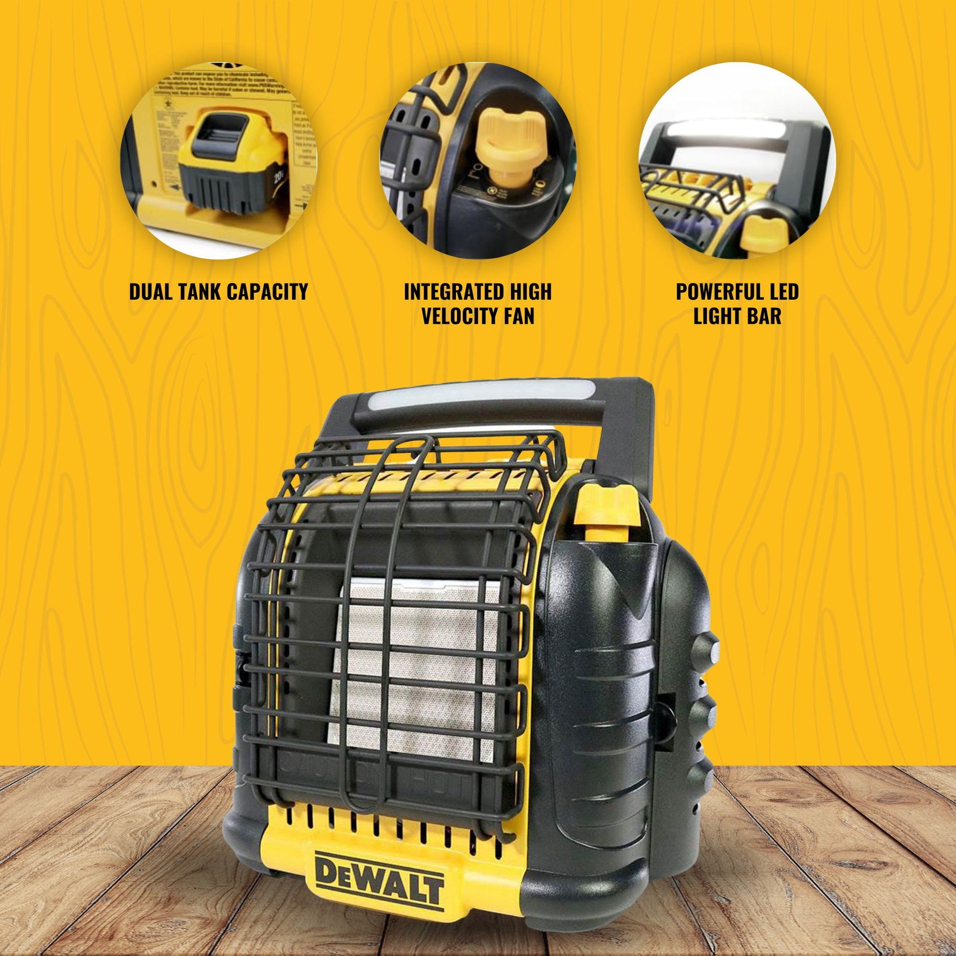 Dewalt 12,000 BTU Portable Cordless Heavy Duty Propane Radiant Heater, Black