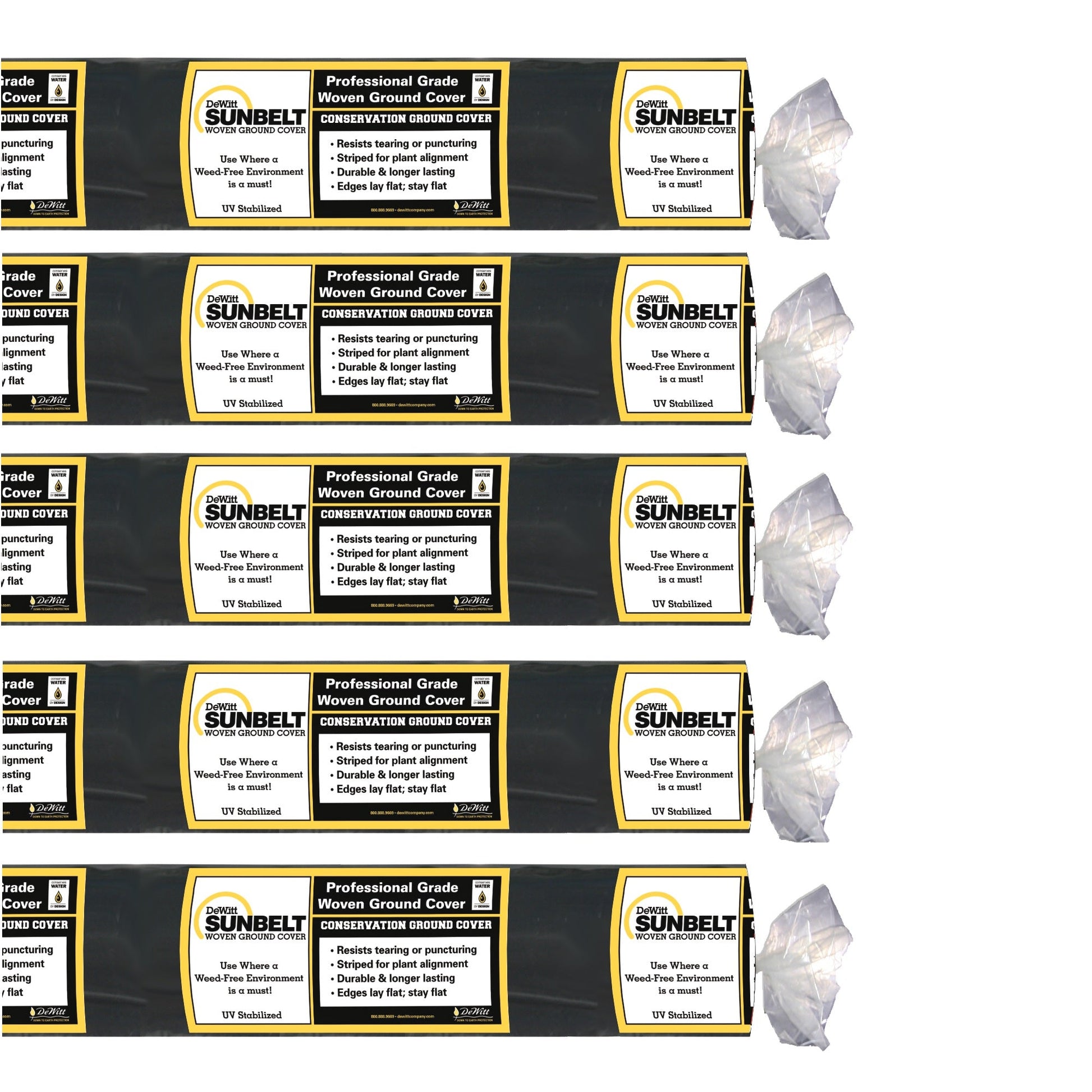 DeWitt Sunbelt 3' Wide Weed Barrier Landscape Fabric Ground Cover, 300' (5 Pack)