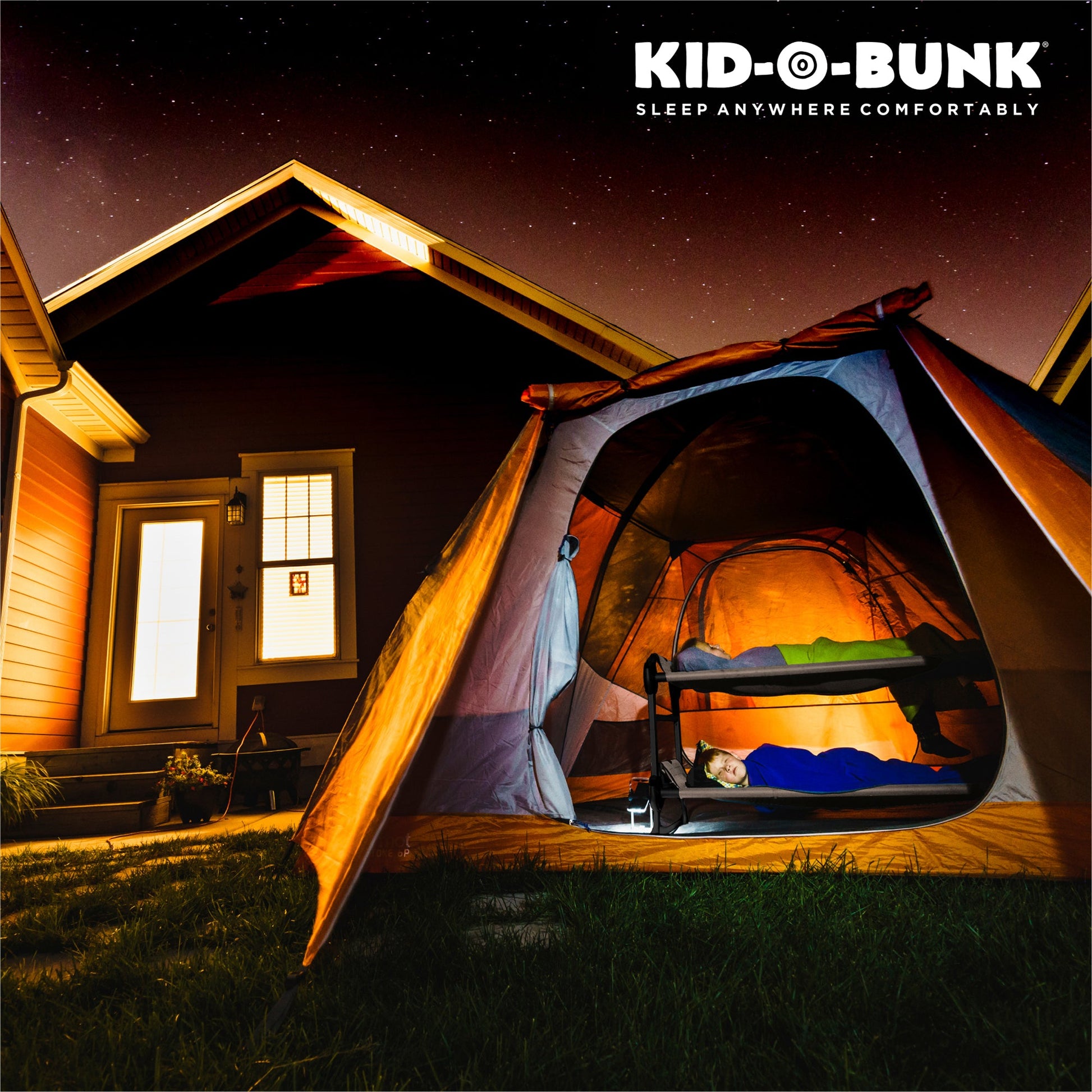 You will love the space, comfort, and tool-free setup of the Youth Kid-O-Bunk Double Cot from Disc-O-Bed. This functional double cot is perfect for family camping trips or accommodating guests at home.