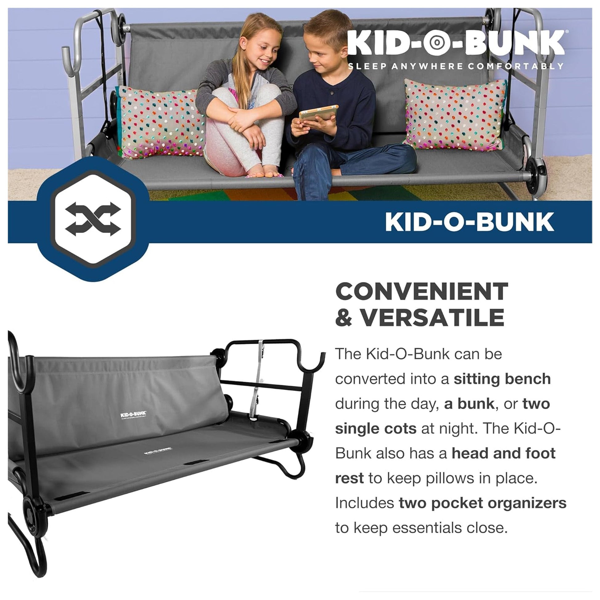 Disc-O-Bed Youth Double Cot Kid-O-Bunk with Storage Organizers & Carry Bag, Gray