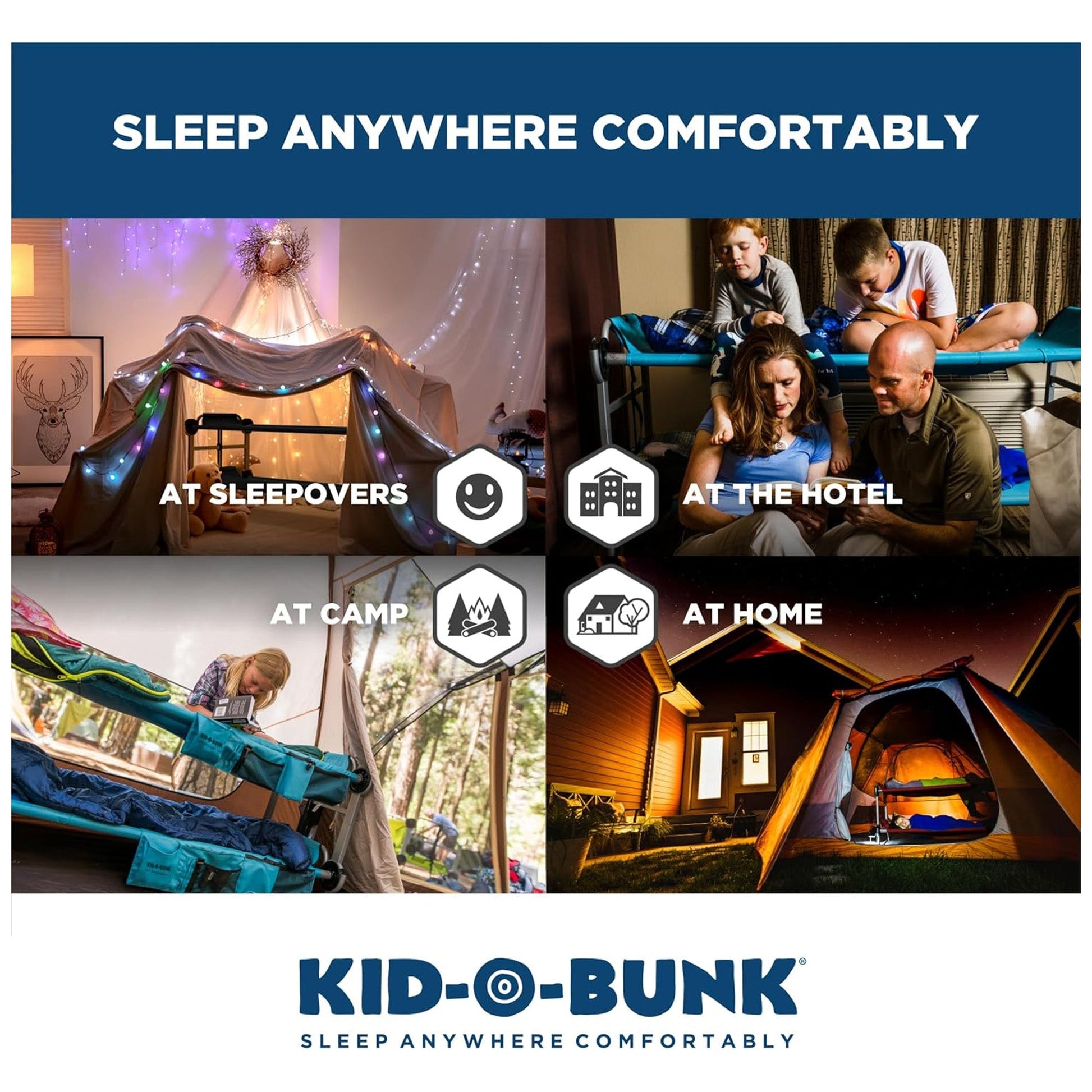Unlock a world of comfort and convenience for your children with the Kid-O-Bunk. This versatile set includes 2 Kid-O-Bunk cots, 4 stack adapters, 2 FREE carry bags, and 2 locking straps, providing everything you need for a great night's sleep.