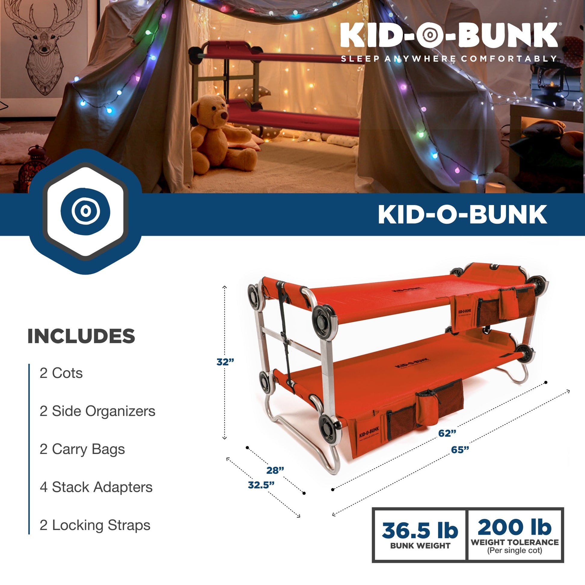 Set up camp with excitement and cabin-style bunks. The Disc-O-Bed Youth Kid-O-Bunk provides plenty of room to kick back and relax without taking up much room at all. Use as 2 separate cots, a bench, or bunk them to save room.