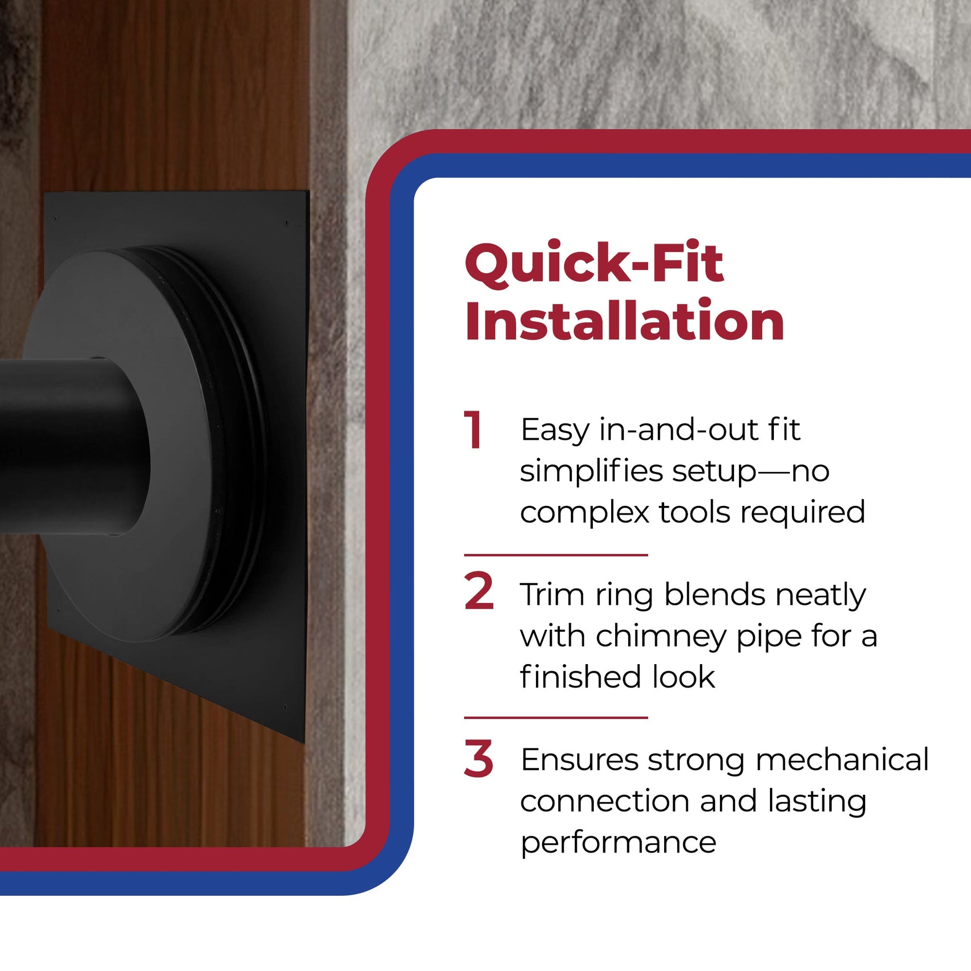 - Made of galvanized steel and painted black, this wall thimble trim will blend neatly with your chimney pipe