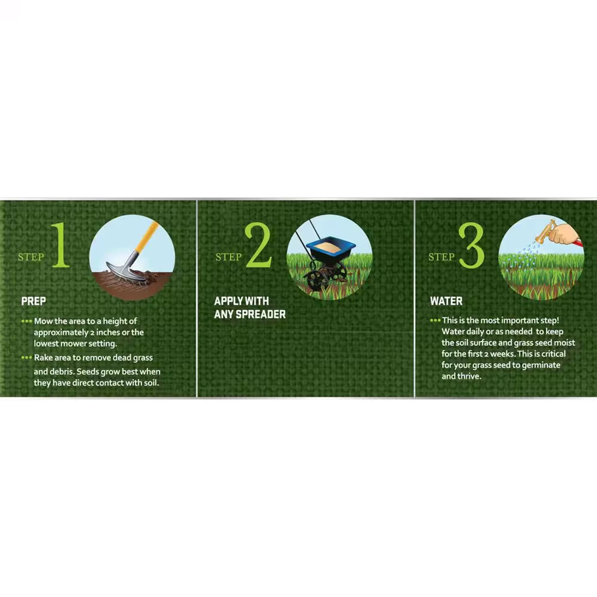 - Application is straightforward and trouble-free; Just use any standard spreader to distribute the seed, water thoroughly, and enjoy watching your lawn undergo a stunning transformation with minimal effort required on your part
