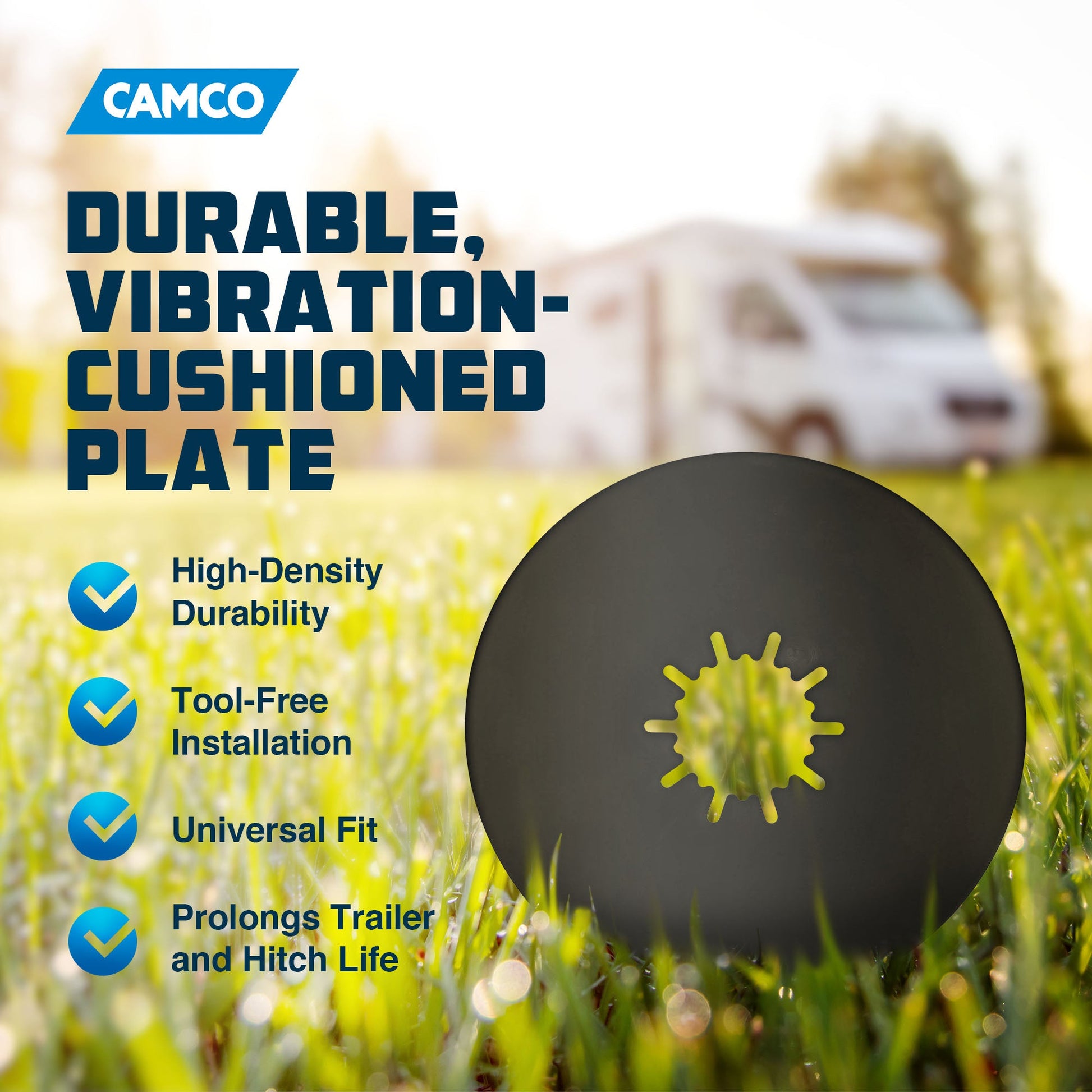 Camco is passionate about providing quality products for outdoor enthusiasts. Whether you're an RVing, boating, camping, towing, tailgating, or grilling enthusiast, Camco has the products to take your passion to the next level. This EAZ LIFT 5th Wheel Lube Plate is no exception. It is engineered to help prolong the life of your trailer and hitch while ensuring a smooth and safe journey.