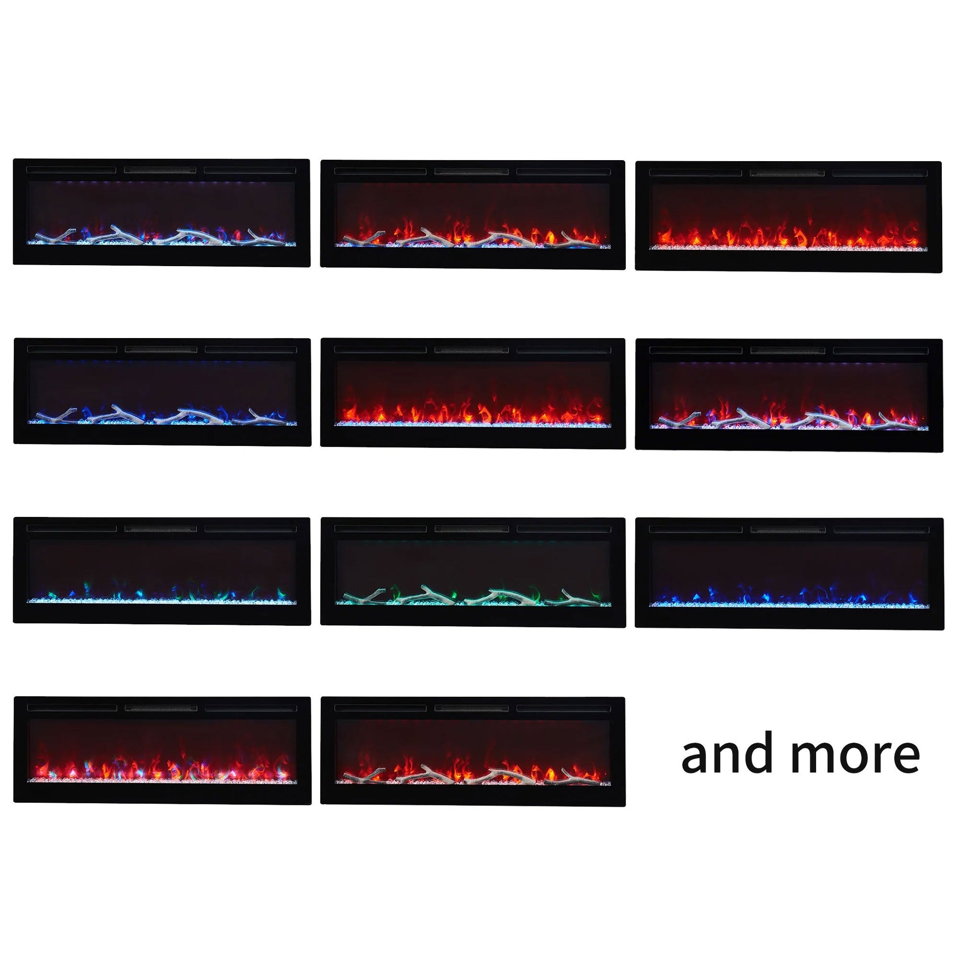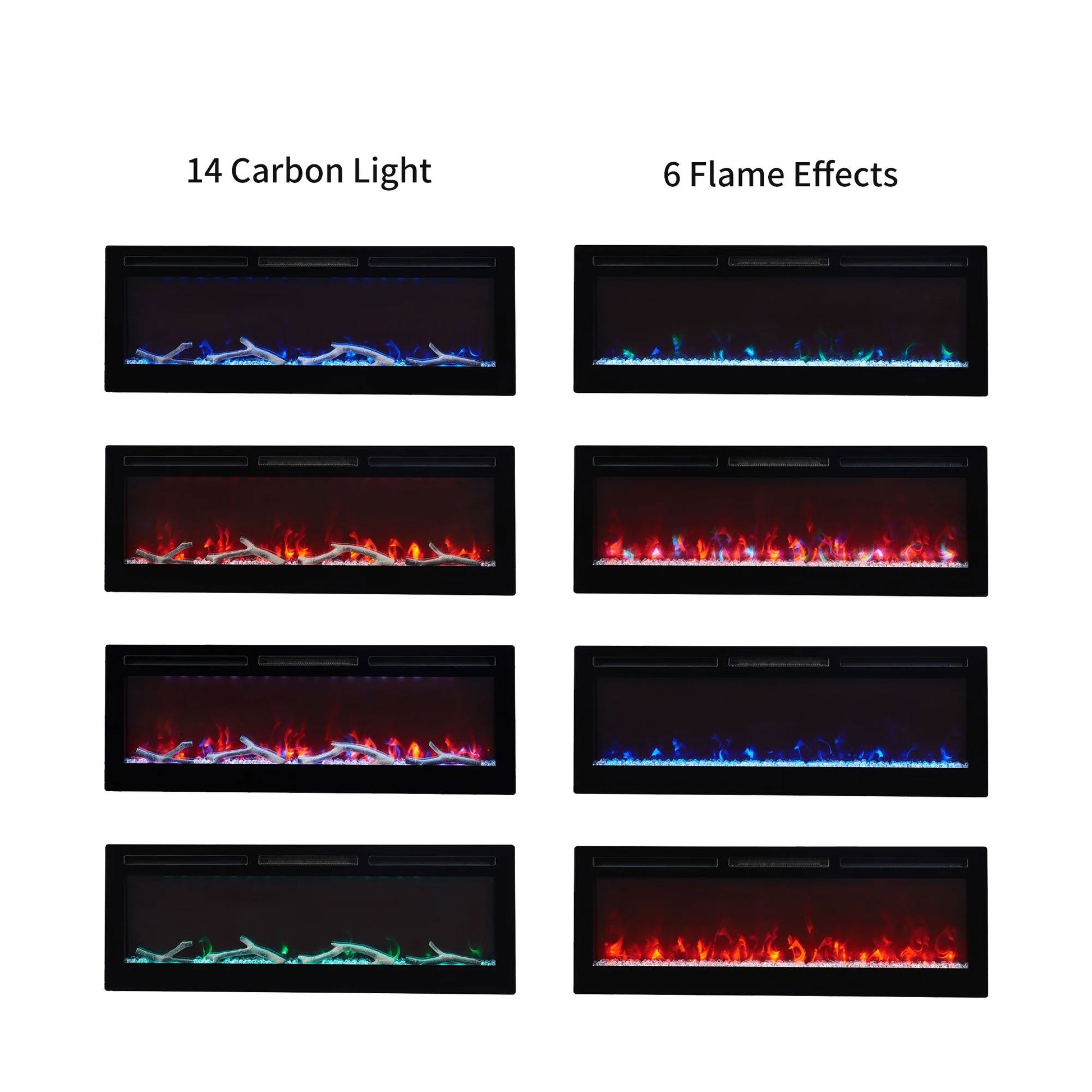 - Wall-mounted or recessed fireplace offers a variety of settings to match your atmosphere