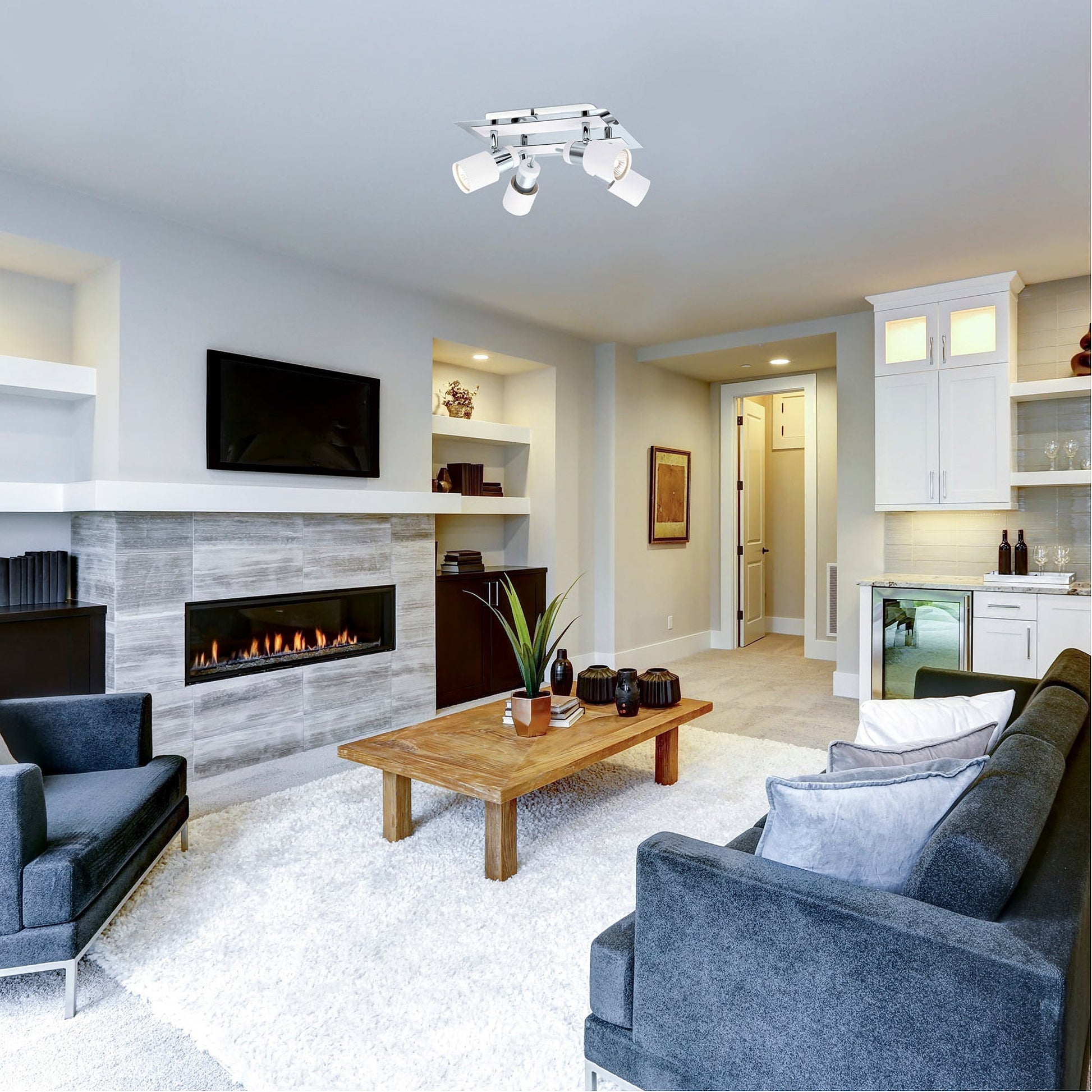 This ceiling light fixture features 4 adjustable bulbs with movable heads so you can shine light exactly where you need it. A dimmable design allows you to adjust this light to the ideal brightness for nighttime reading, afternoon working, or relaxing on the couch. With a durable steel canopy, this semi-flush mount fixture securely attaches to your ceiling to provide a stylish look for years to come. This light can be used with a 50 watt LED bulb (not included) so you can bring light to your home. Overall, this fixture measures 9.45 inches long, 9.45 inches wide, and 10.54 inches tall for a unique look to your living space.