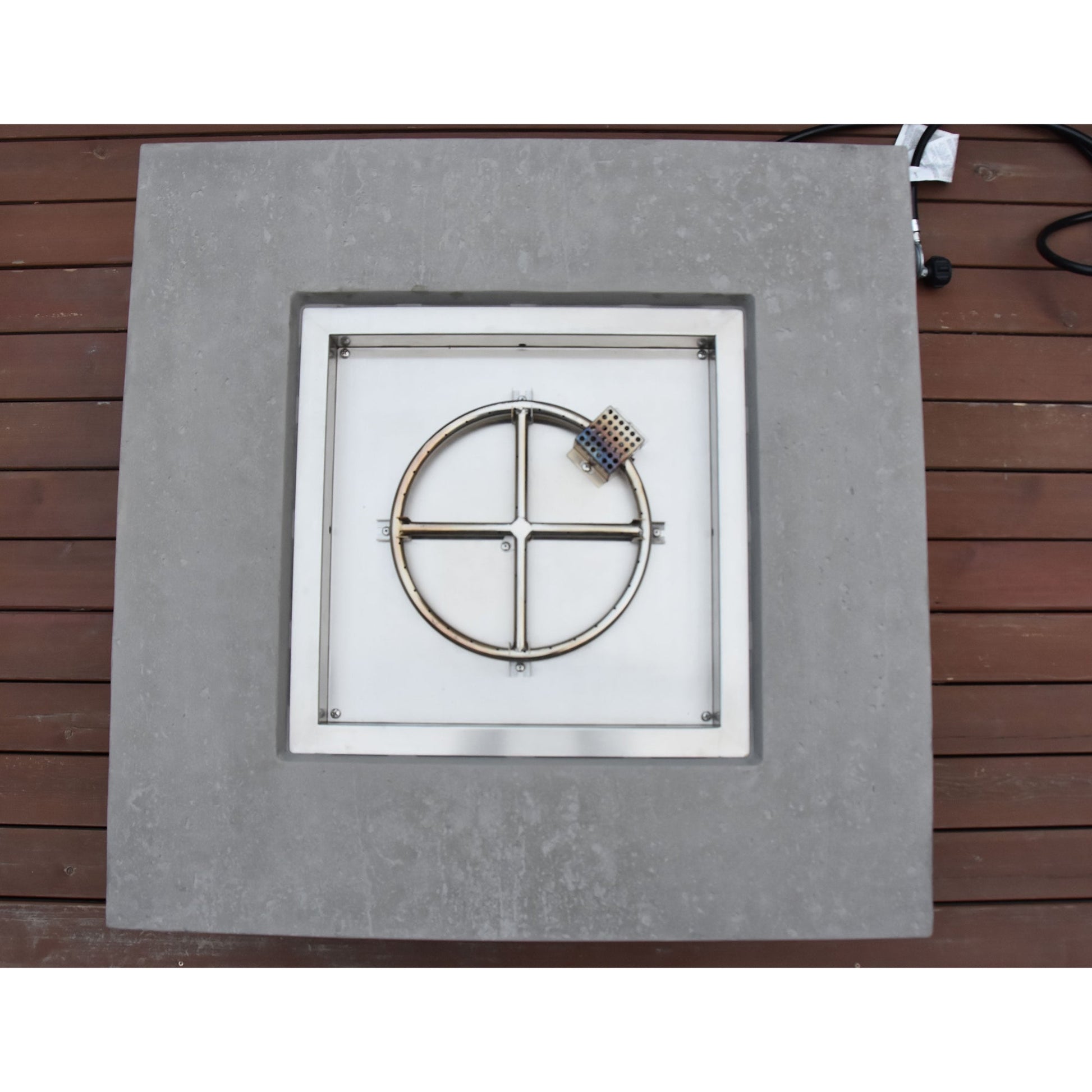 This liquid propane fire pit table features a heavy-duty design that's ideal for the backyard, patio, deck, poolside, or other outdoor living spaces. Using standard 20-pound propane gas tanks (not included) for fuel, the burner produces up to 45,000 BTUs, perfect for a safe and warm bonfire experience, regardless of the season. The pit itself is made of strong and durable glass fiber reinforced concrete, giving a textured, ornate finish. The 16-gauge, 304 stainless steel burner pan and ring contain the harshest flames, allowing yourself and others to enjoy the fire from a safe distance. Whether used as an outdoor dining table or patio coffee bar, this square-shaped table is engineered for your comfort.