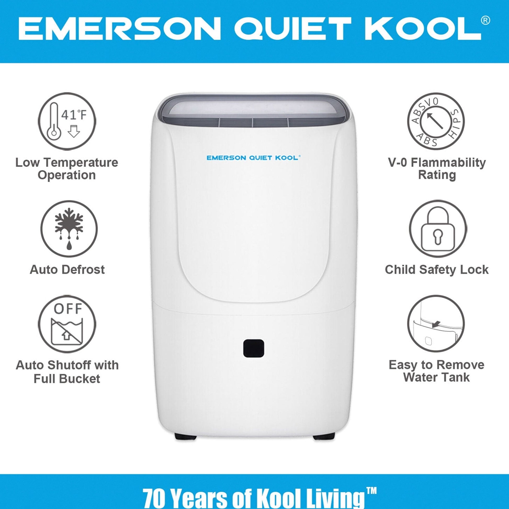 Emerson Quiet Kool 40 Pint Digital Display Dehumidifier with 3 Fan Speeds, White