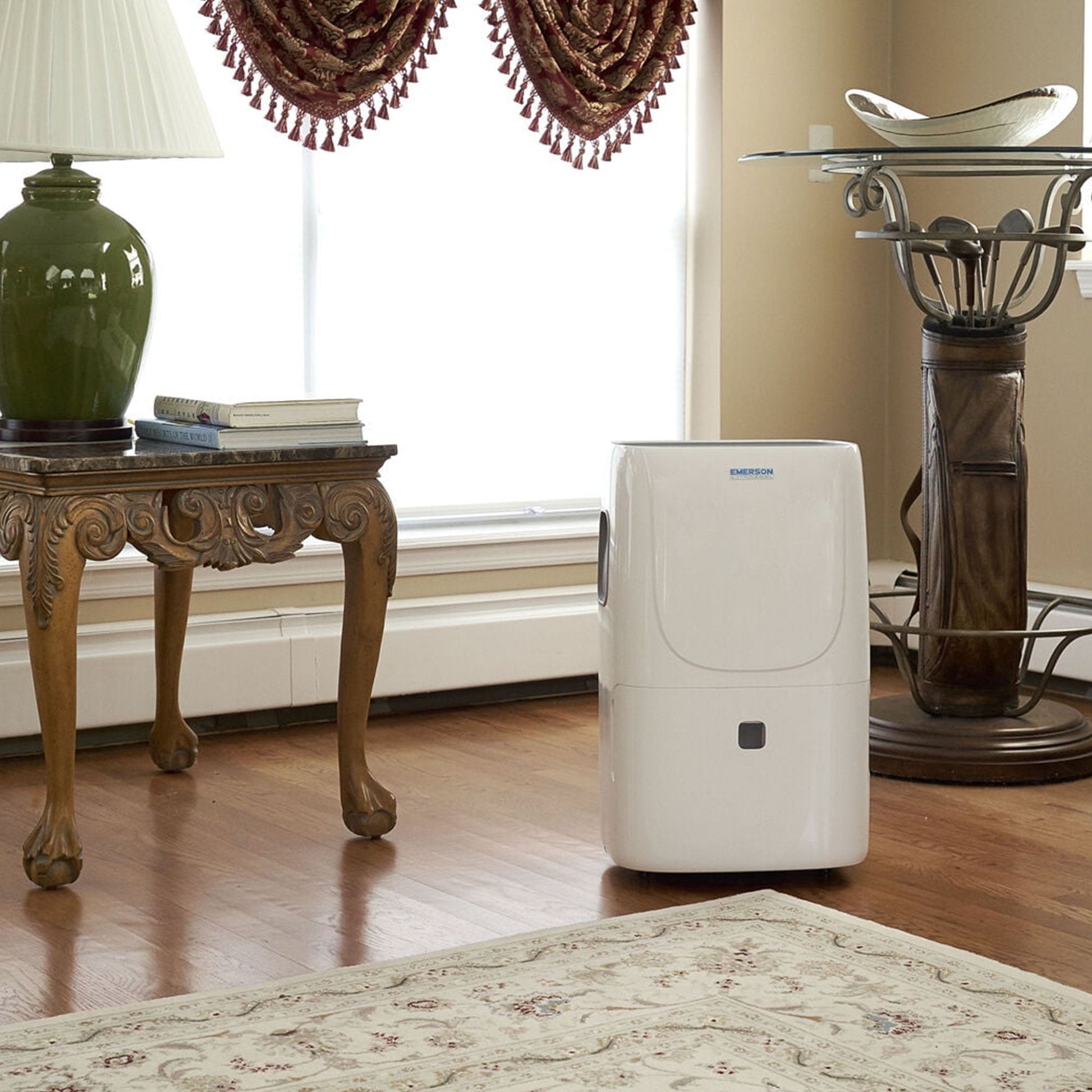 Experience cleaner, healthier air with the Emerson Quiet Kool 40-Pint Dehumidifier, a reliable companion for creating a comfortable environment in your home.