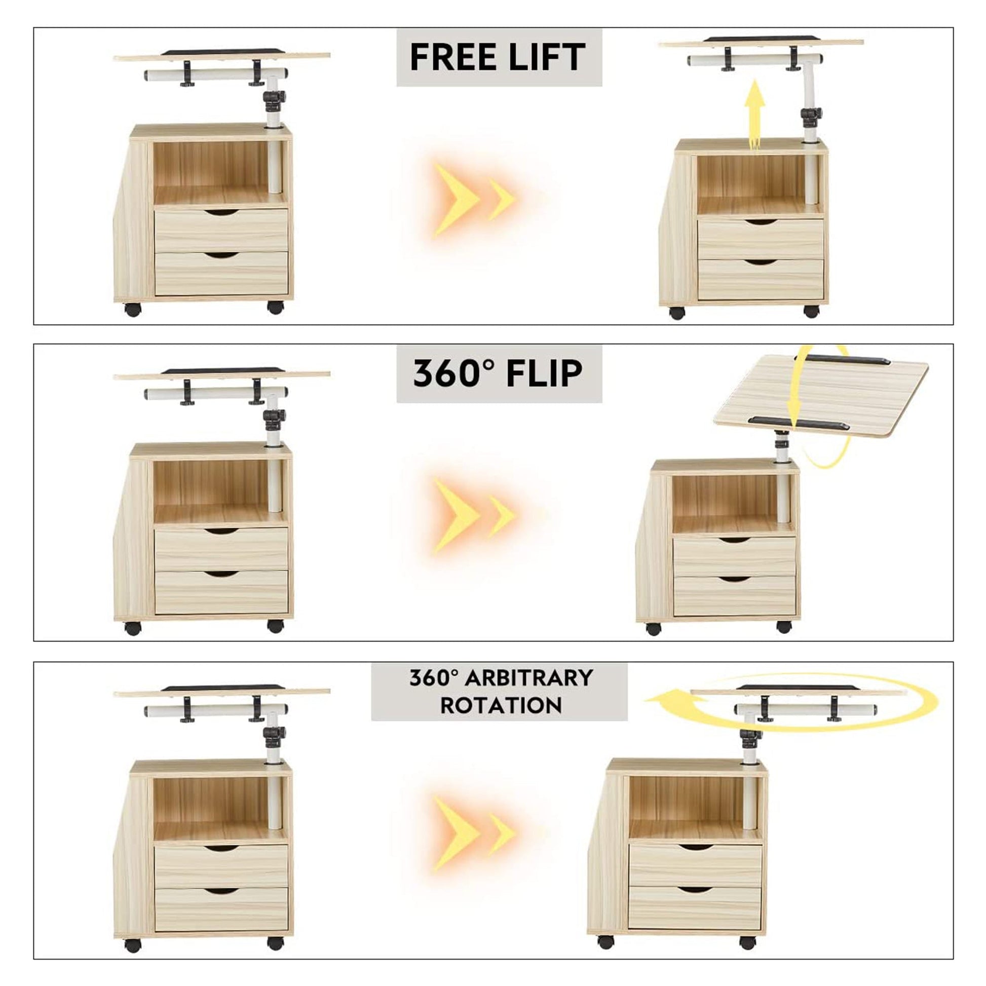Your life moves fast, and you need to be able to keep up. With this Swivel Top Adjustable Height End Table by EROMMY, you can adapt to your surroundings with ease while still being productive.