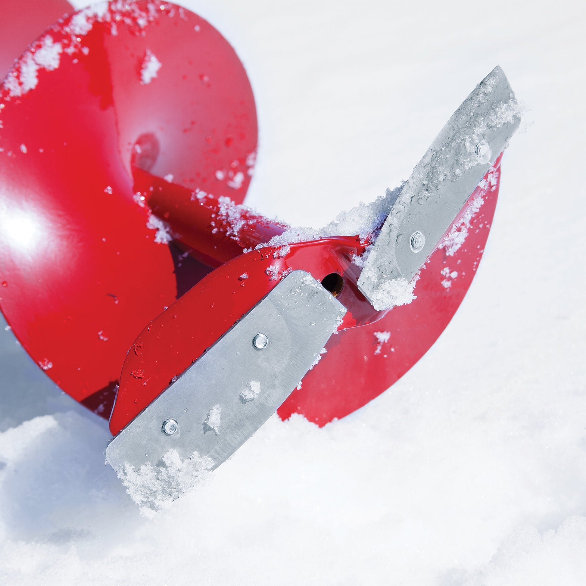 - Works great when re-drilling frozen-over holes because the unique center ring keeps the blades even and prevents them from getting stuck