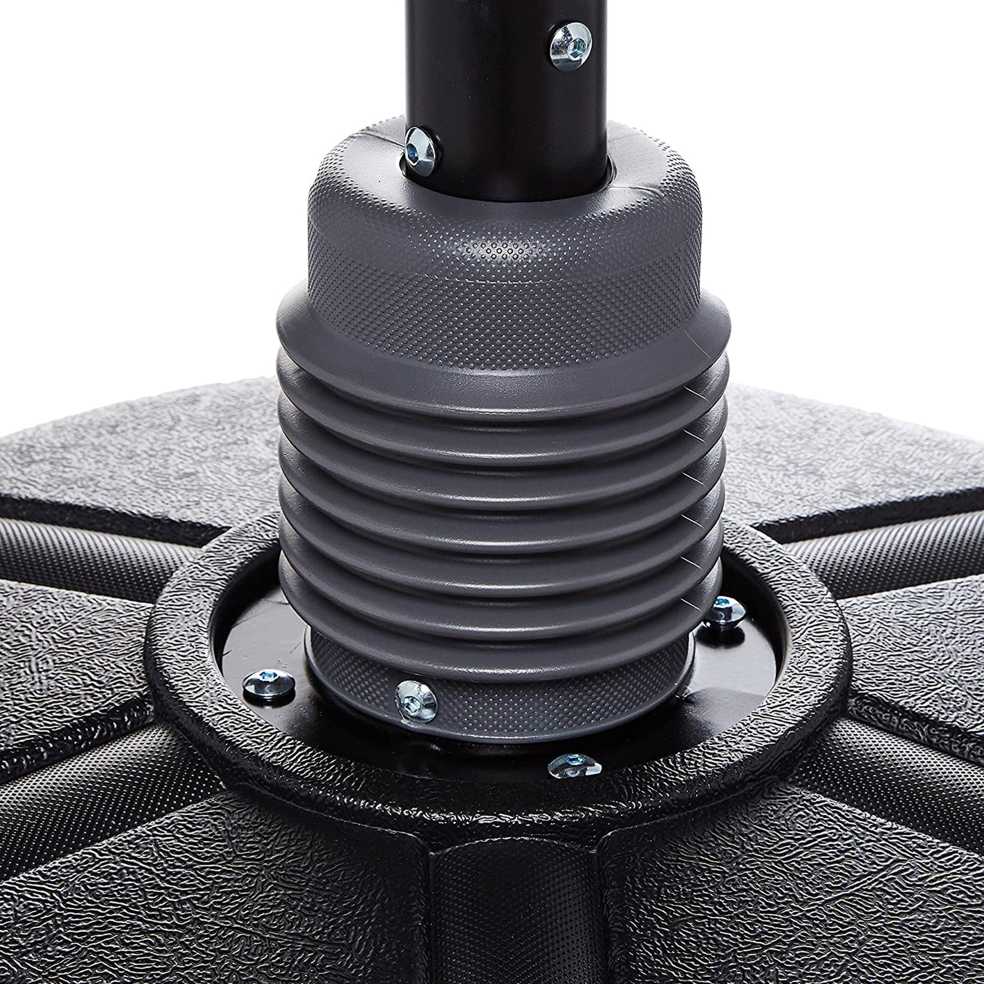 - Heavy-duty base can be easily filled with water or sand to ensure a reliable anchor (approximately 130 pounds with water and 200 pounds with sand)