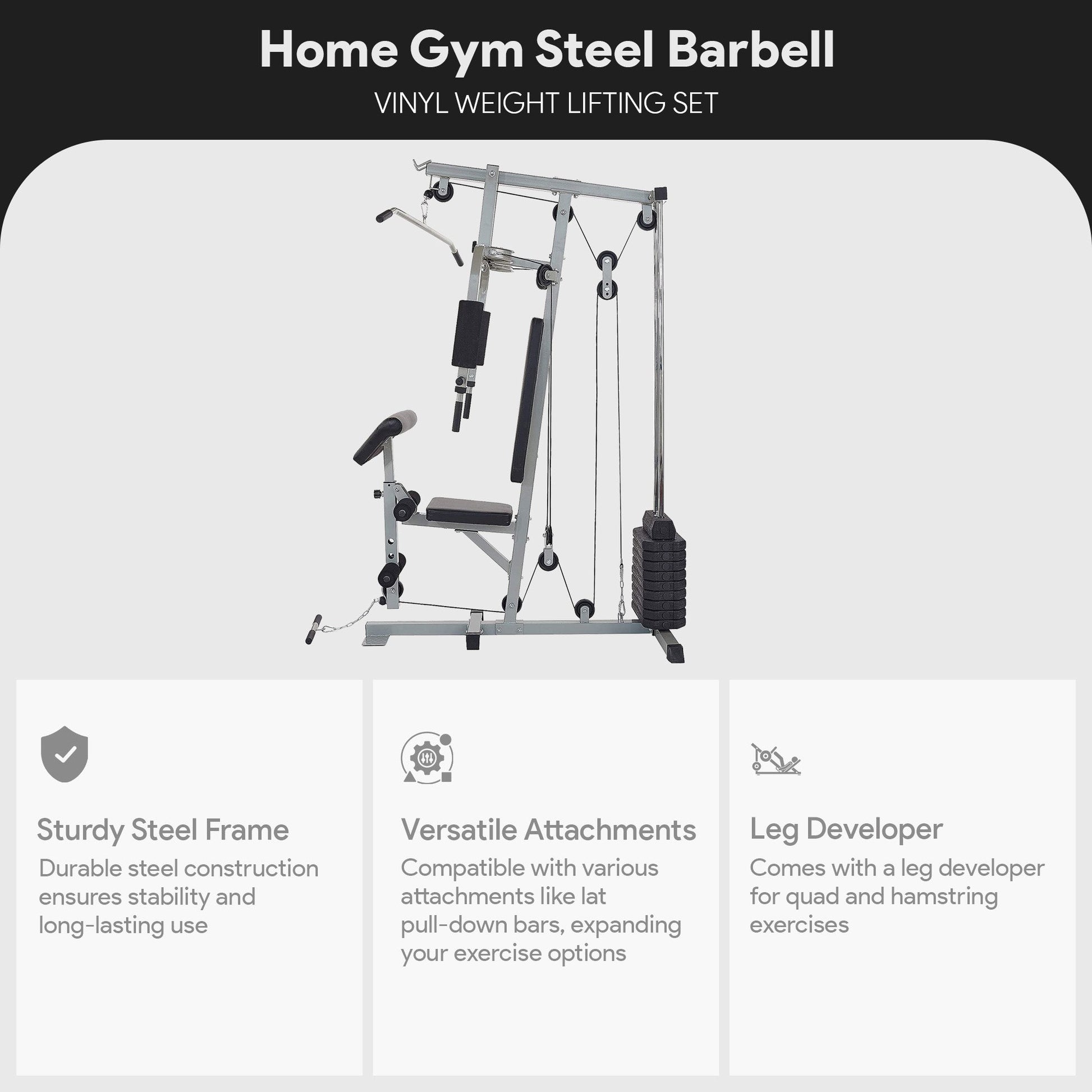 Strengthen and sculpt your body with this Everyday Essentials BF-RS80 1000-Pound Capacity Home Gym Workout Station. Complete with a 125-pound vinyl weight stack and multiple pull-bars, you'll be able to customize your routine for great workouts every time.