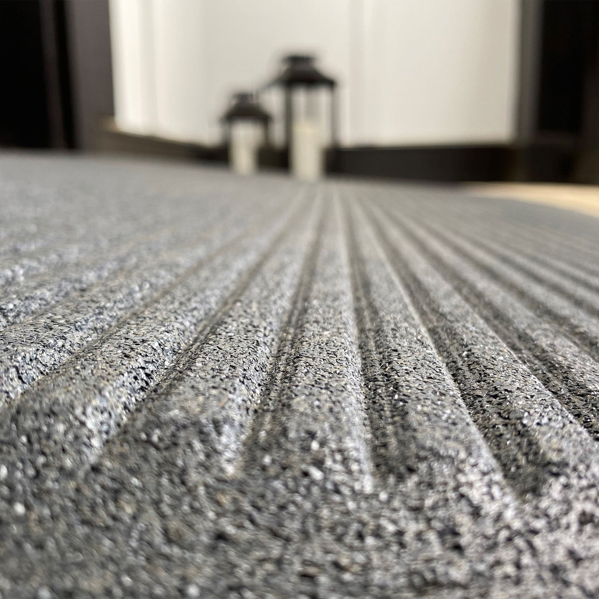 Crafted from recycled materials, this mat comprises at least 90 percent recycled rubber, aligning with sustainable practices. This door access tool has a quick and easy installation process allows for immediate use – simply set it in place, insert the anchors, and you're good to go. The mat's adaptable nature shines through, with the ability to be effortlessly trimmed or notched to achieve a custom fit for your unique doorway. Designed with functionality in mind, recessed grooves effectively trap dirt and debris, maintaining cleanliness and preventing slips. The edgeless construction promotes efficient water drainage, while the beveled edges facilitate smooth cross-traffic access and contribute to an attractive, finished appearance.