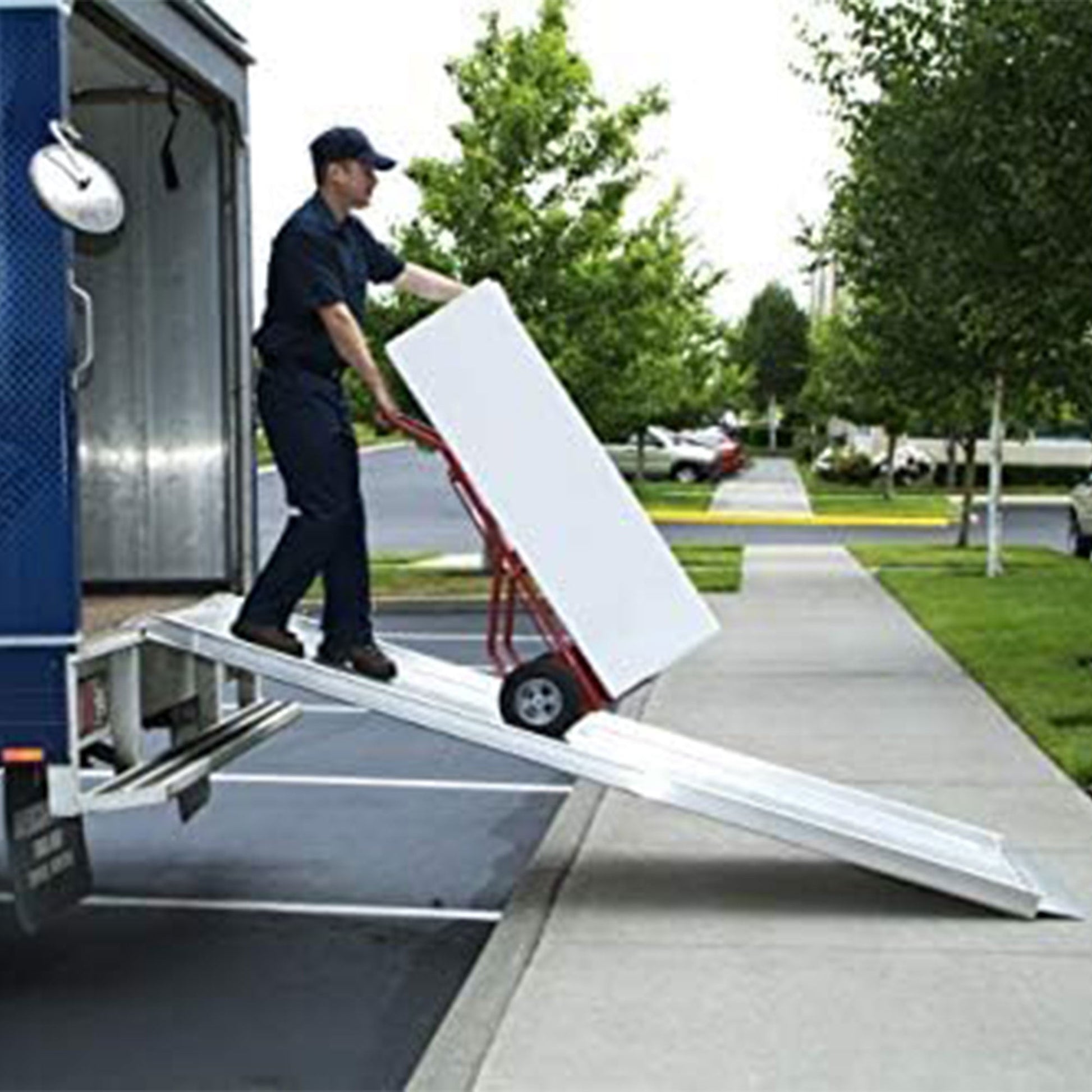 The TRAVERSE™ Walk Ramp offers a secure, durable, and portable loading solution for your fleet of delivery trucks or cargo containers. Whatever your needs, from beverage and furniture delivery to loading cleaning and office equipment, this all-aluminum Walk Ramp will help get the job done.