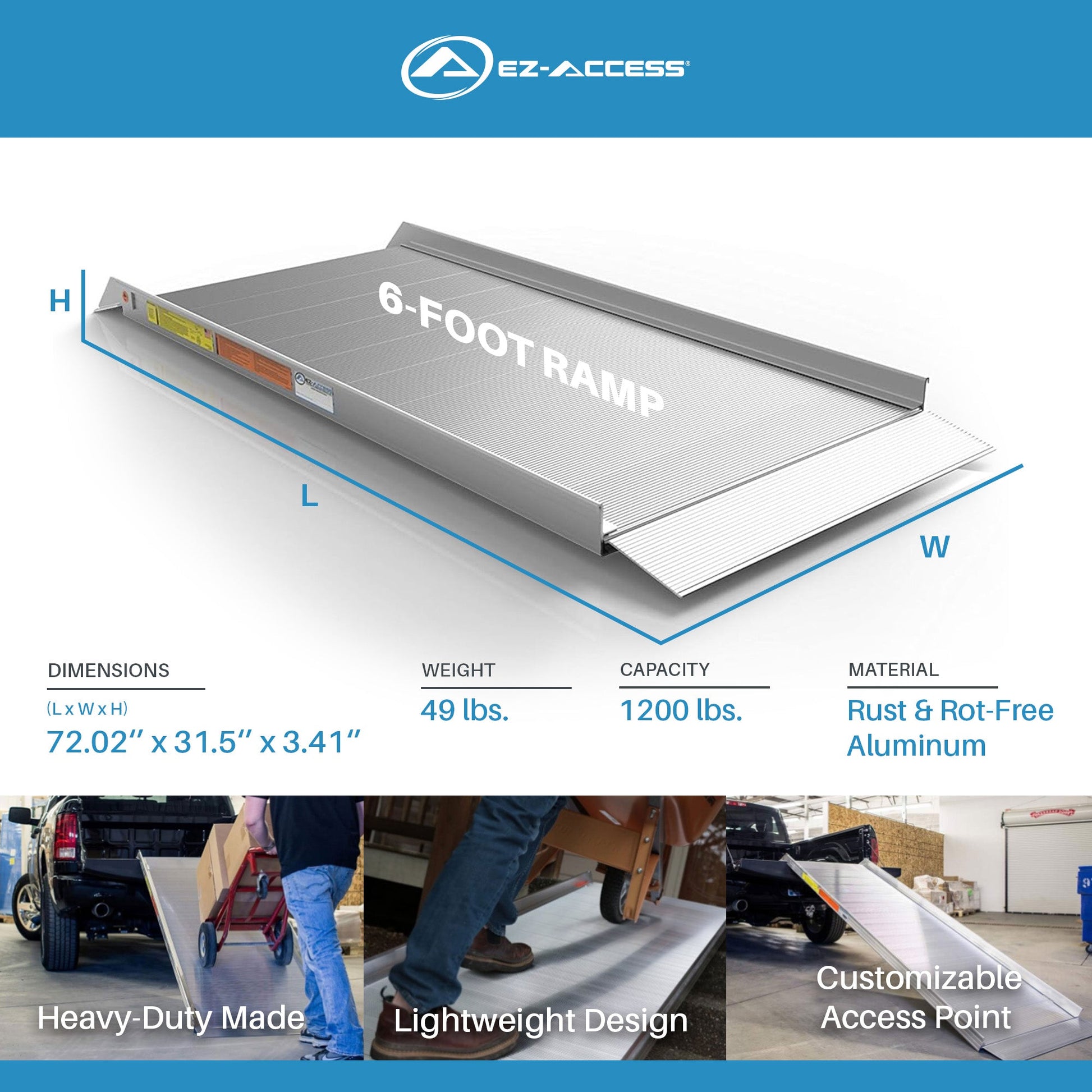 EZ-ACCESS TRAVERSE 6 Foot Walk Ramp w/Textured Surface & Hook/Strap Attachment