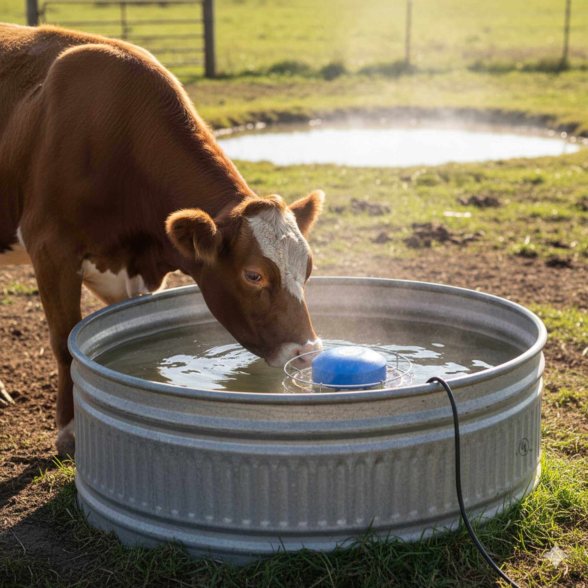 When the temperature drops, keep your livestock water tank from freezing over with the Farm Innovators H-4615 Convert-Able De-Icer.