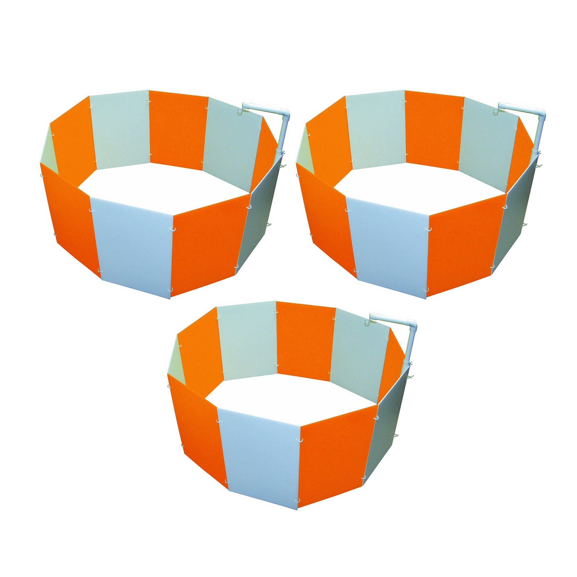 With 3 sets of (10) 18-inch tall by 12-inch wide durable plastic panels that unfold and hook together, each corral is 3 feet in diameter and is large enough to house up to 15 chicks. Attached and hanging from above is an adjustable height brooder lampstand that adjusts from 20 to 34 inches, allowing you to alter the height and temperature inside the corral.