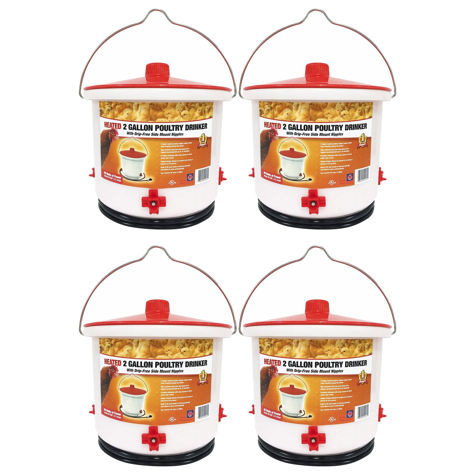 Farm Innovators Heated 2 Gallon Poultry Water Bucket Drinker, White/Red (4 Pack)