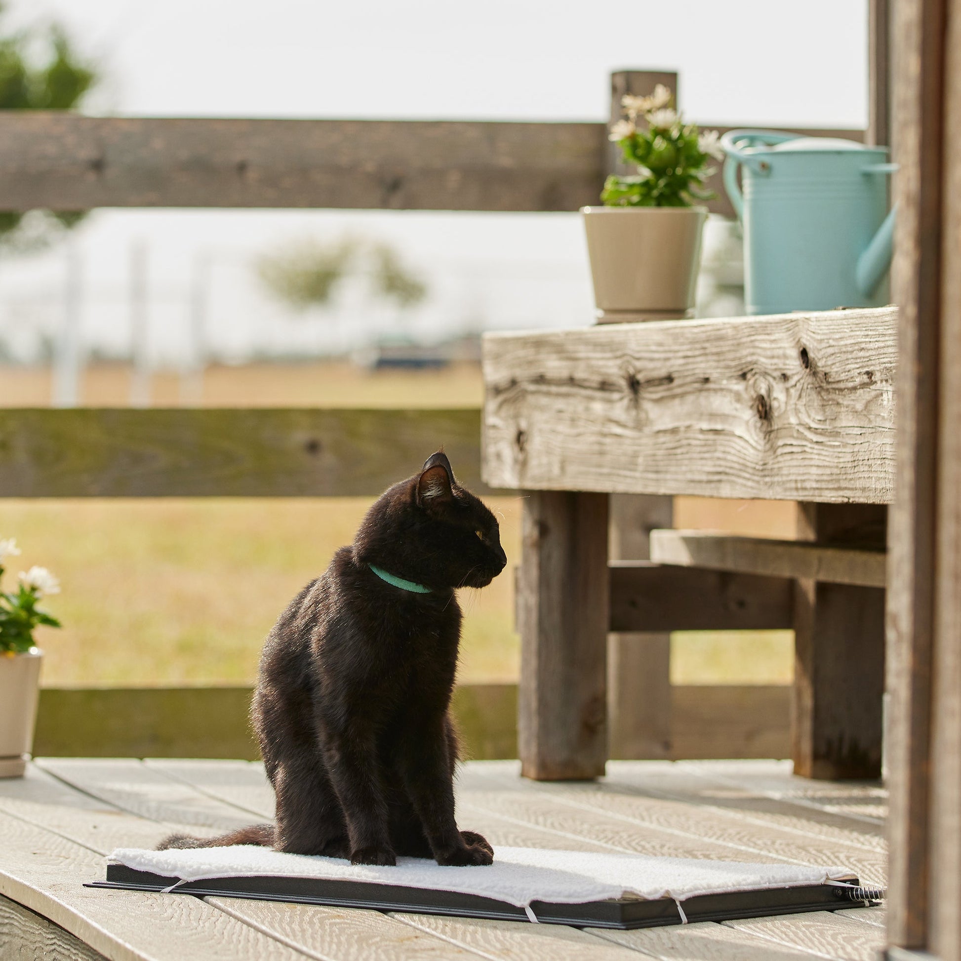 Keep your pet warm and comfortable during even the toughest winters with the Farm Innovators Medium Plastic Heated Pet Mat. This 17 x 24-inch fleece-covered pet mat can be used indoors or outdoors and is the ideal winter accessory for your dog, cat, or other pets!