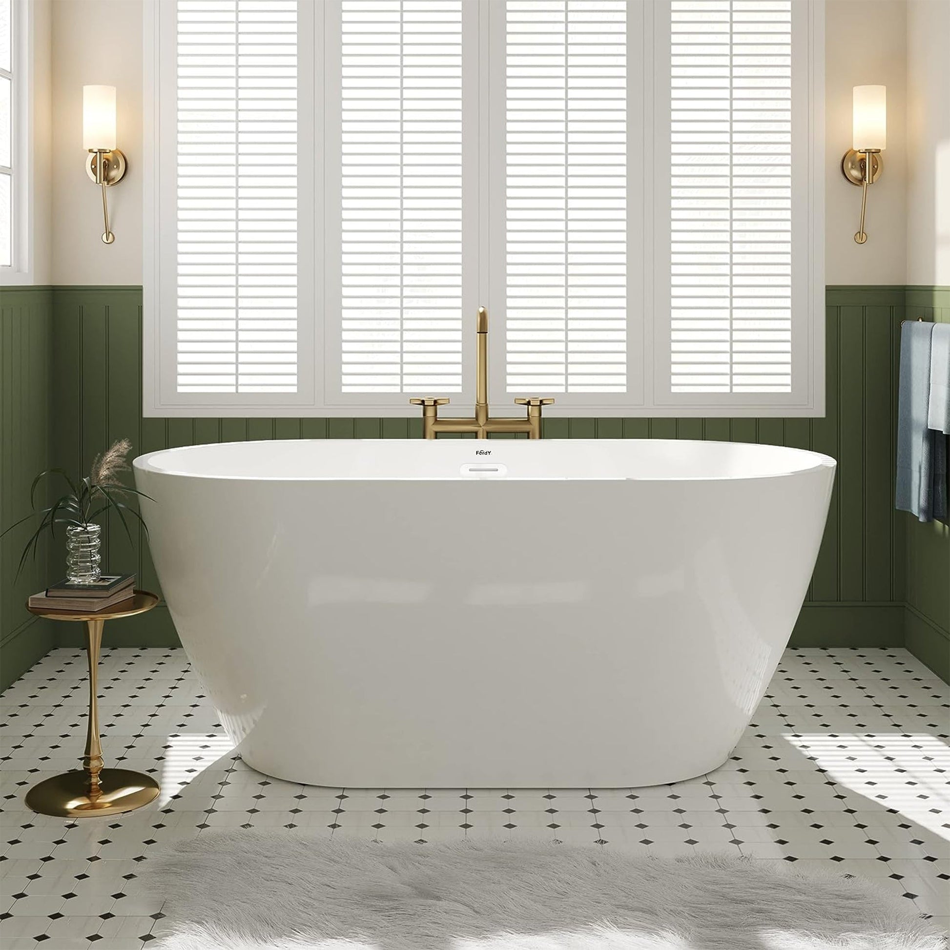 Crafted with precision, this bathtub showcases dynamic curvatures and hand-finished details that exude character and style. Its glossy white finish not only adds a touch of sophistication to your bathroom but also ensures longevity, promising years of indulgent bathing experiences. Measuring a generous 55 inches in length and boasting a soaking depth of 15 inches, this bathtub is designed for your utmost comfort. The sloped lumbar support enhances your relaxation, making every soak a superb bathing experience. The classic slotted overflow allows for deep immersion, letting you escape into a world of tranquility.