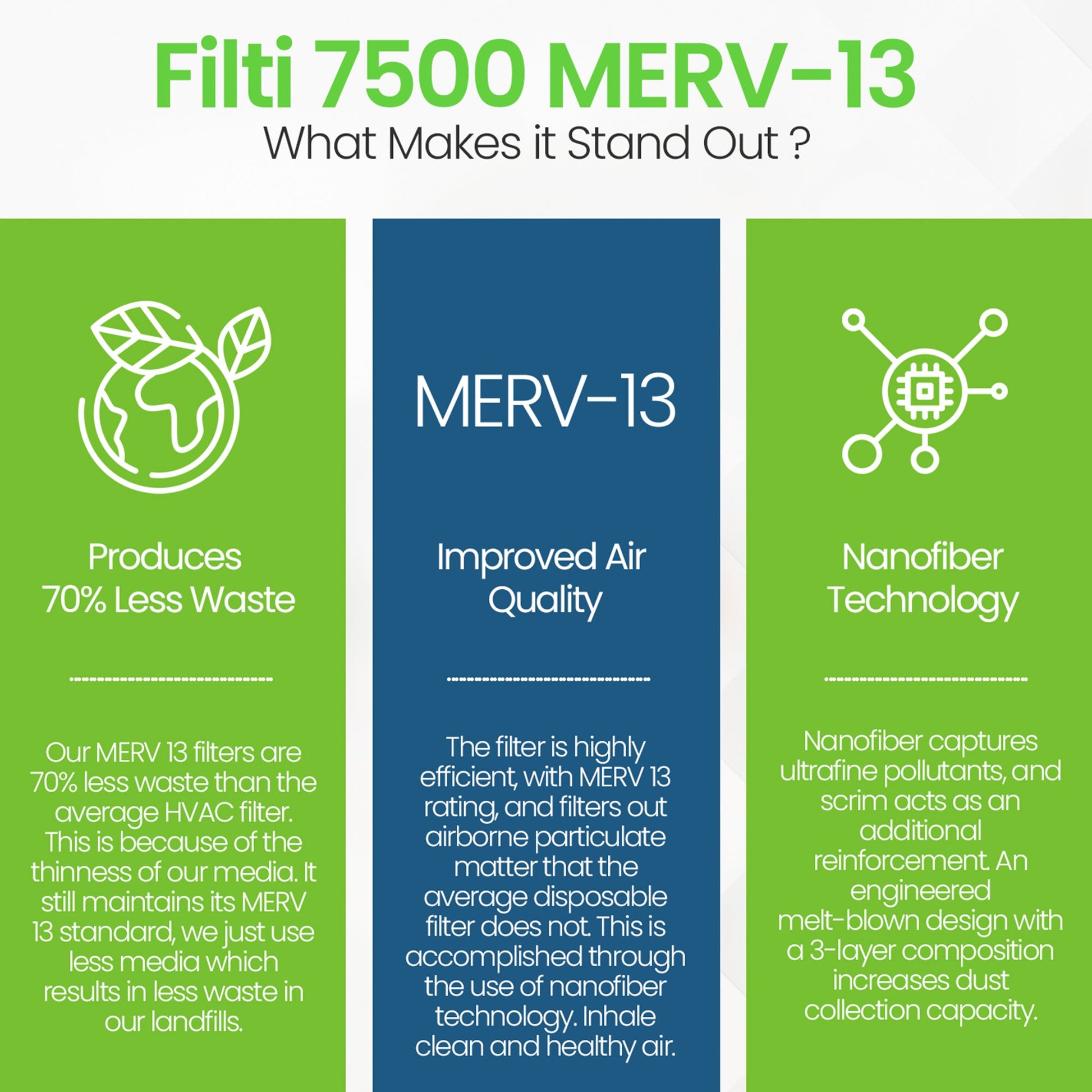 Designed to keep your air clean, this air filter is rated at MERV-13 efficiency. This air filter also sports state-of-the-art nanofiber technology, which captures ultrafine pollutants and acts as additional reinforcement.
