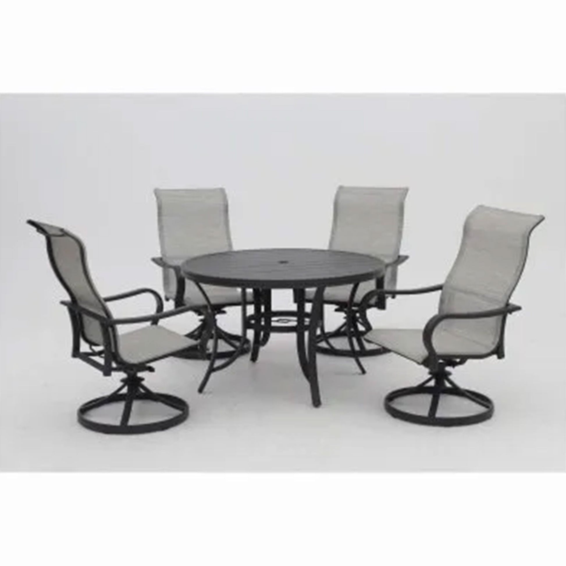 Crafted with precision, this chair boasts powder-coated aluminum frames, ensuring durability and resilience against the elements. The low-maintenance light gray sling fabric enhances the aesthetic appeal of this patio recliner and contributes to its overall longevity. Designed to provide both comfort and style, this dining chair features a weight capacity of 250 pounds, making it a reliable addition to your outdoor space. The seat height of 17 inches adds an extra layer of convenience, ensuring a comfortable and relaxed dining experience.