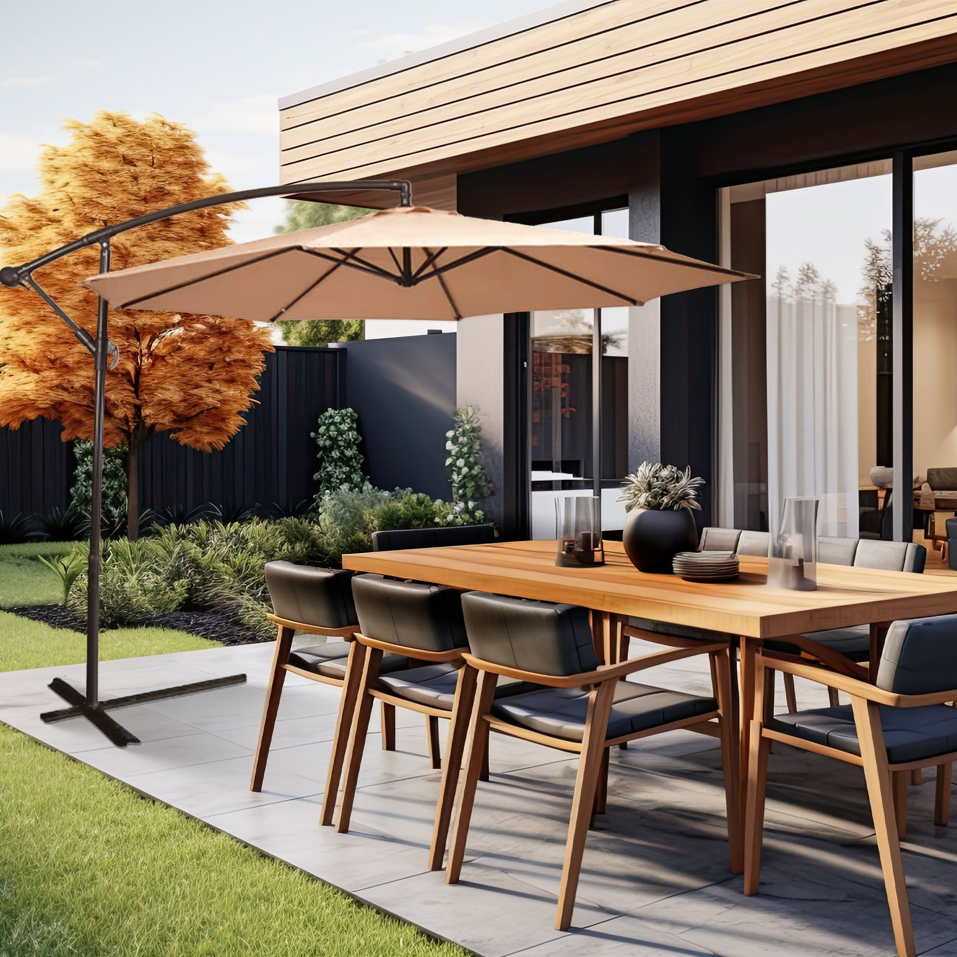 - Offset umbrella that creates the ideal shade solution for your outdoor retreat