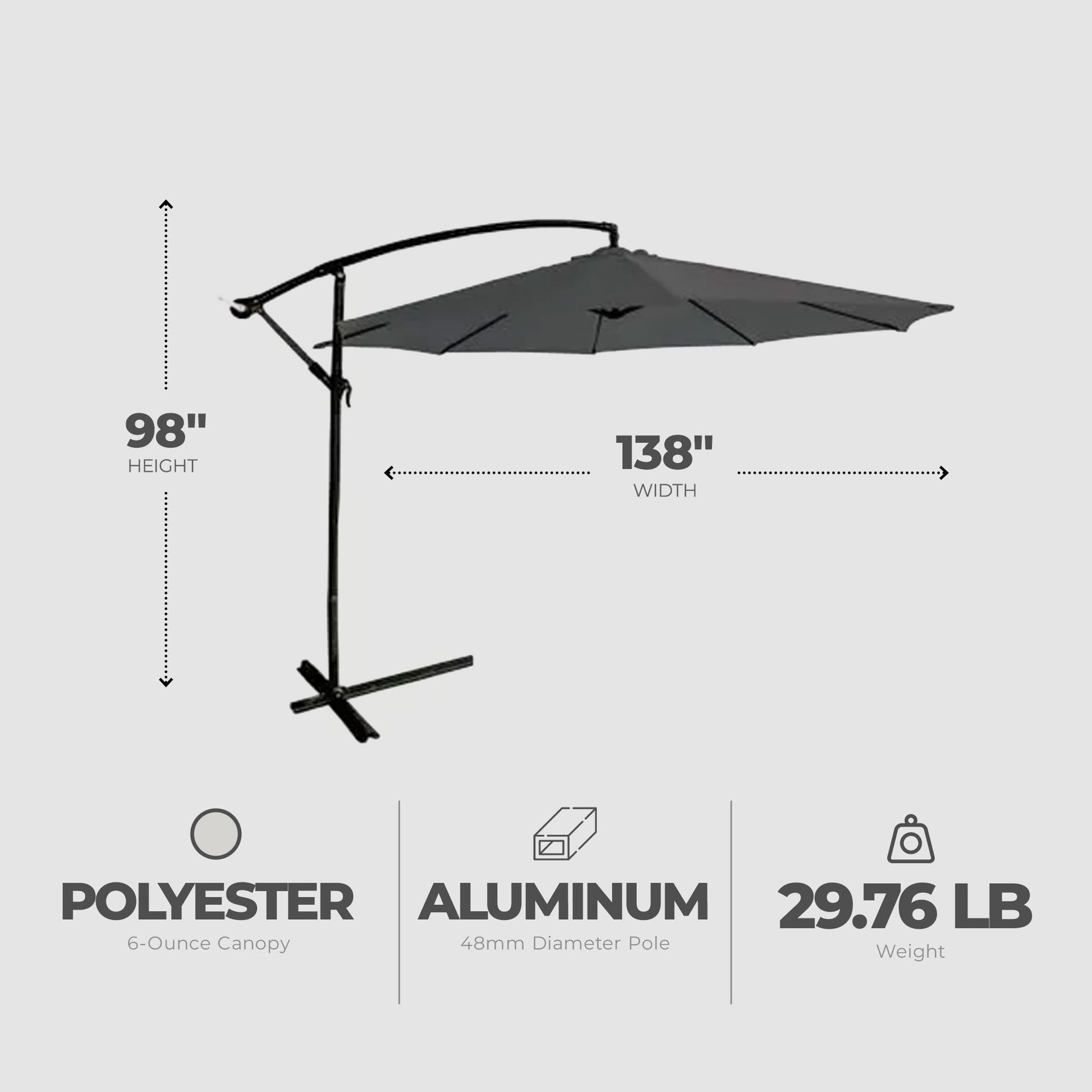 Four Seasons Courtyard 11.5 Foot Offset Patio Umbrella, Charcoal Gray Fabric