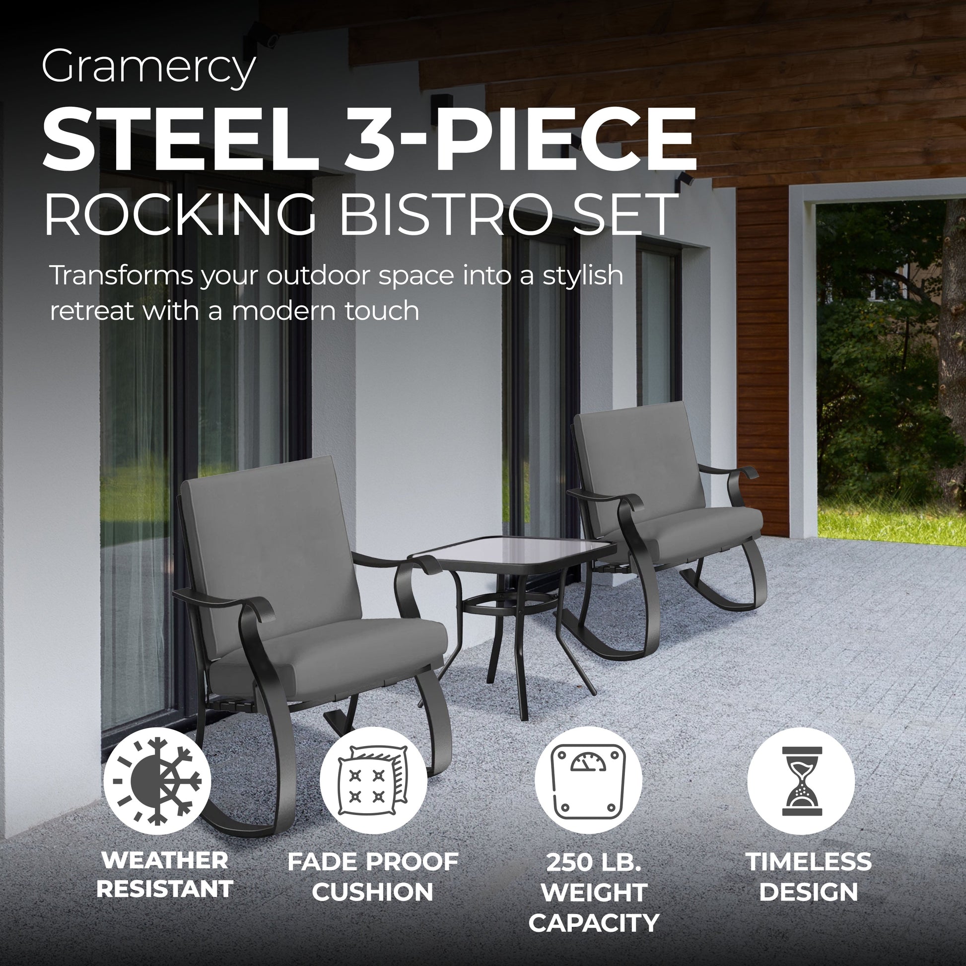 Four Seasons Courtyard Gramercy Sturdy Steel 3 Piece Rocking Bistro Set, Gray