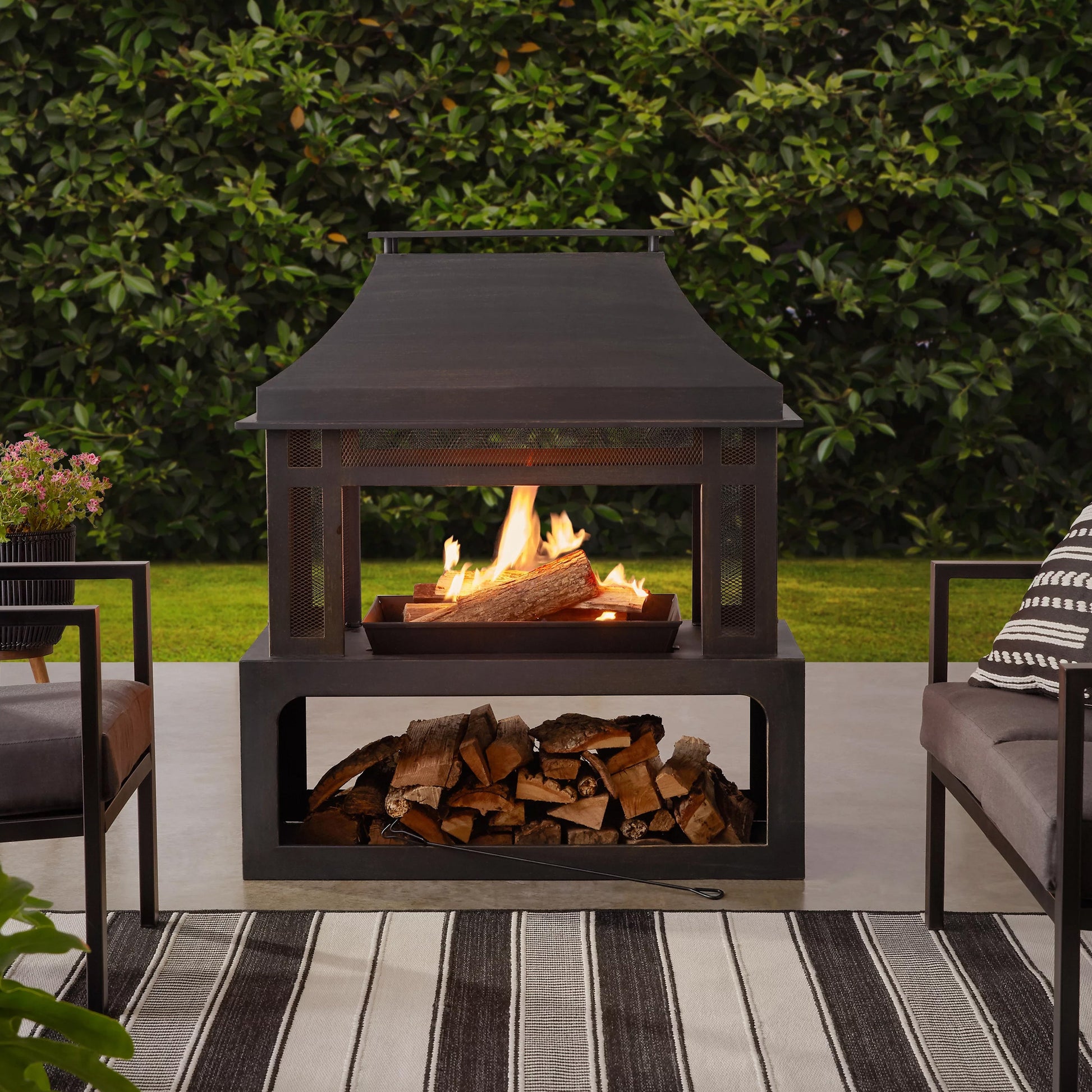 - Includes a stylish log rack at the bottom that provides a convenient and organized storage solution for your firewood