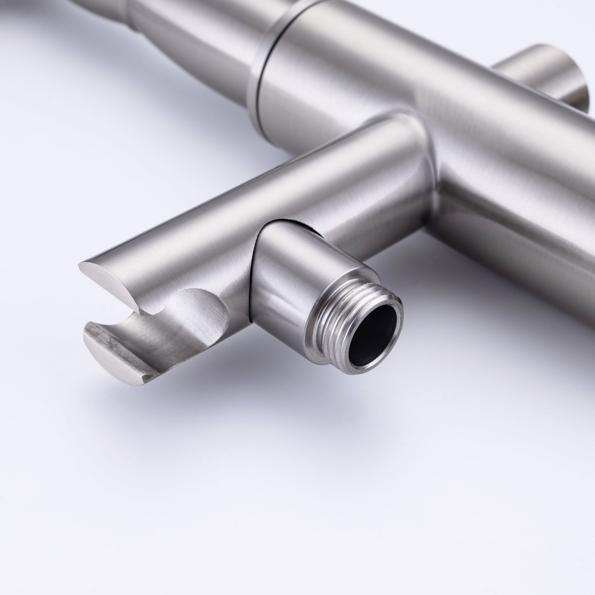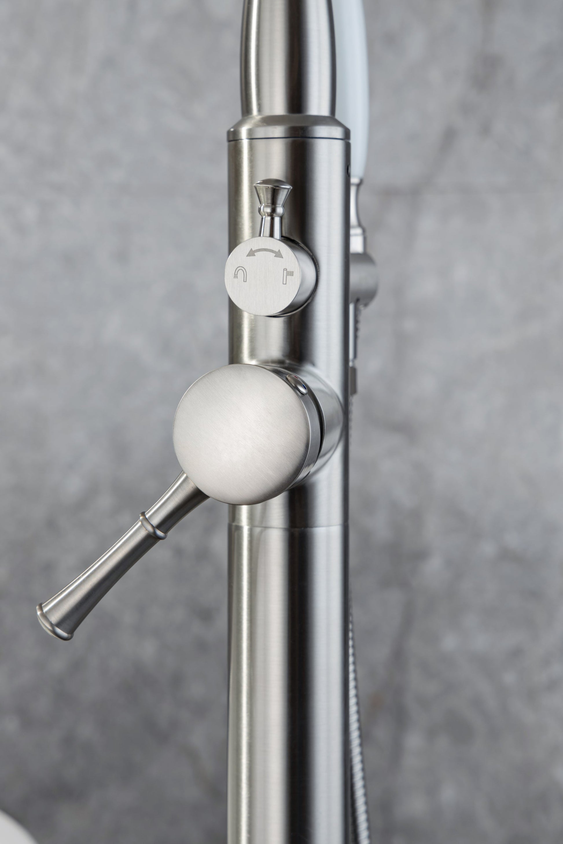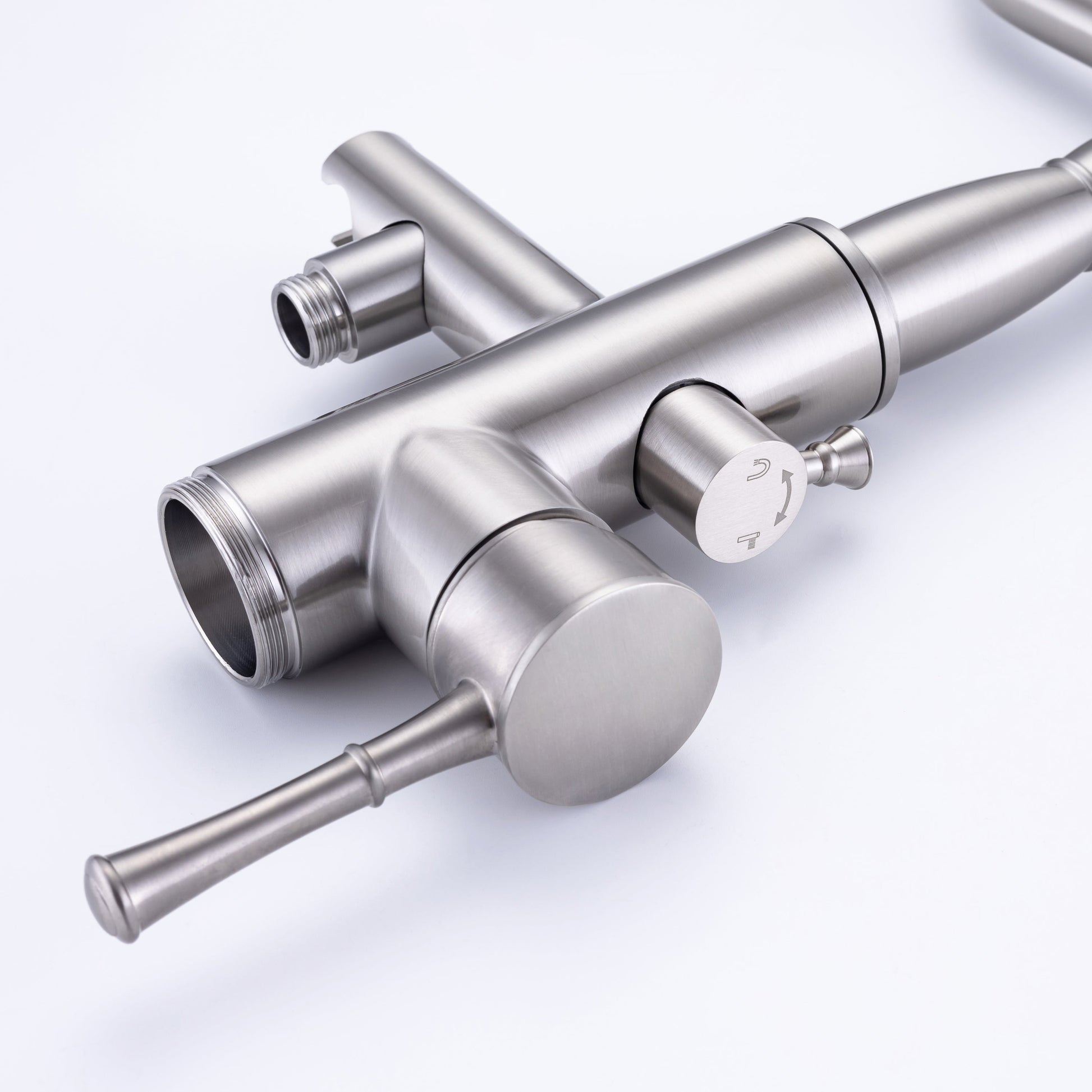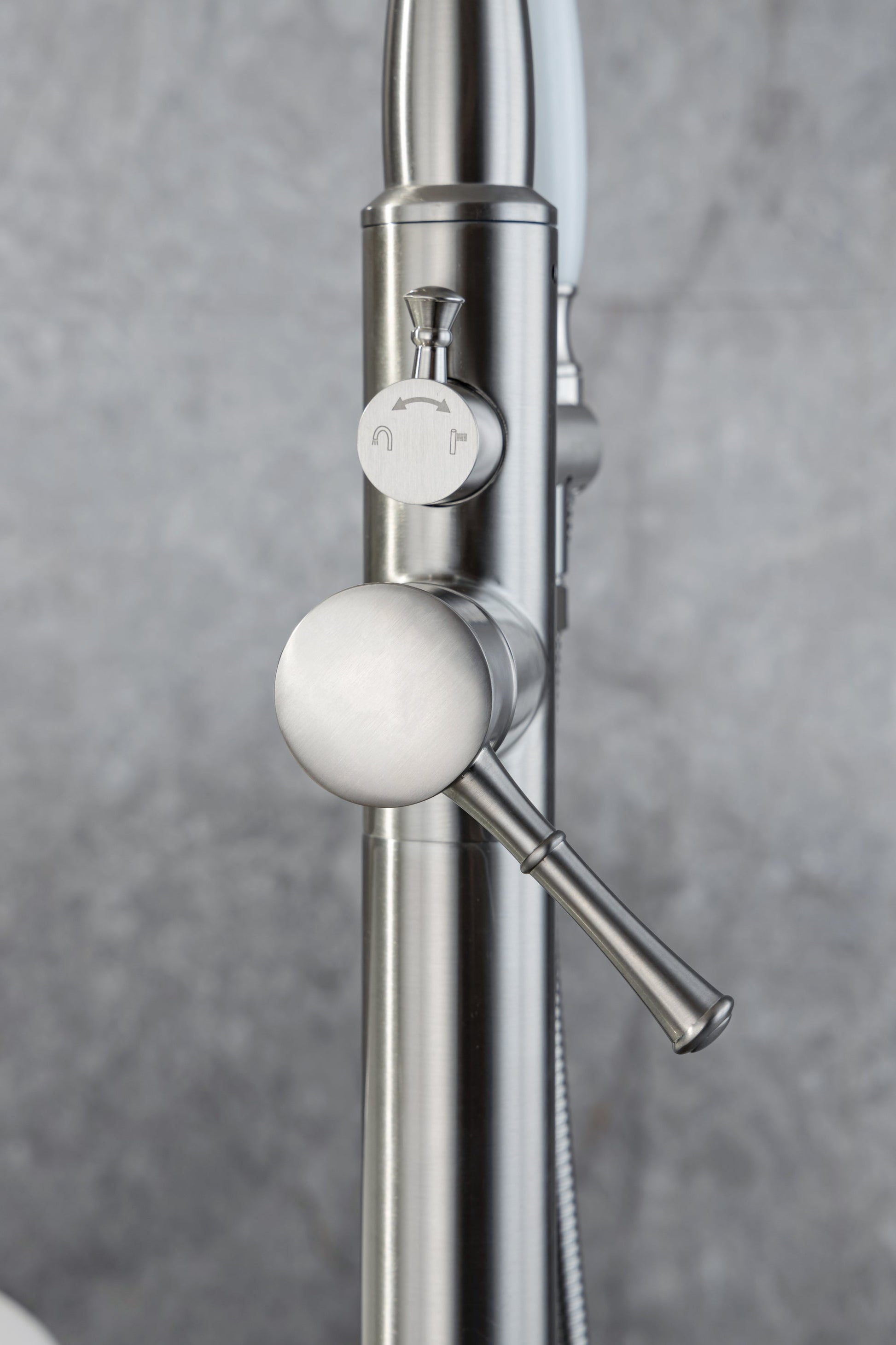 【Freestanding tub faucet diverter reset automatically when turn off】When turn off water , the diverter would reset automatically to the spout mode. Next time you use the gorgeous free standing tub filler, water would come out of the spout instead of handheld shower, avoiding getting sprayed on your face by the handheld shower. 【Long hose design for the floor mount bathtub faucet 】The handheld shower with 59'' long stainless steel hose, gets to every part of the tub to clean. 【Easy to install】You would get all you need to install the freestanding bathtub faucet, no need to buy rough-in. With clear instructions included in the package, you can install easily and get a stable bathtub filler with 9.84'' long swivel spout, handy sprayer, good water pressure. 【Great quality and classic design】The free standing faucet is made of quality brass and is extremely solid and heavy. Besides, our customers love the roman, elegant, vintage and classic look so much and say that it's even prettier in person. Available in four colors,including matte black, brushed nickel, chrome and oli-rubbed bronze. 【Note】Make sure your water supply could be 1.18-1.57'' below the finished floor. If you have any question, feel free to contact our frendly customer service.