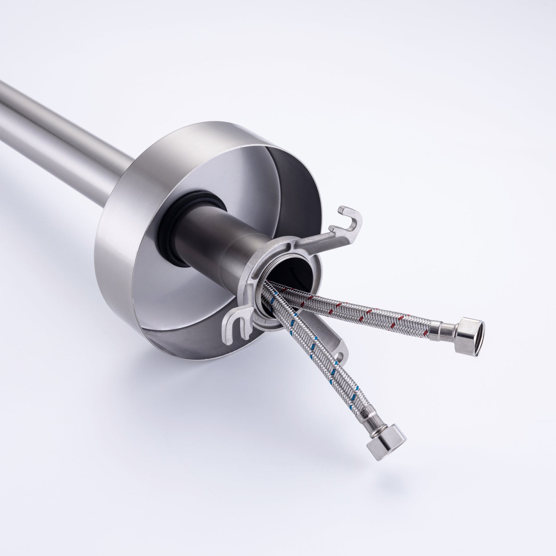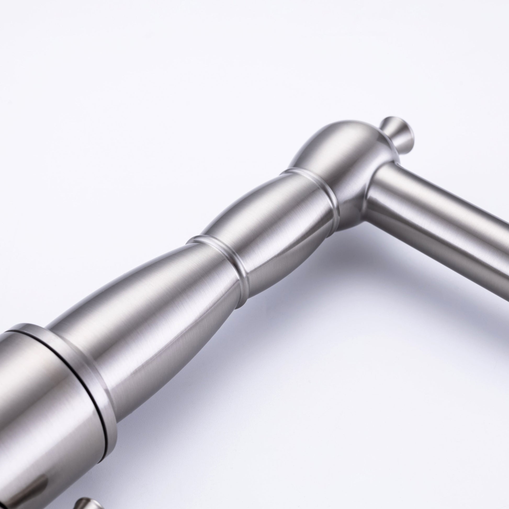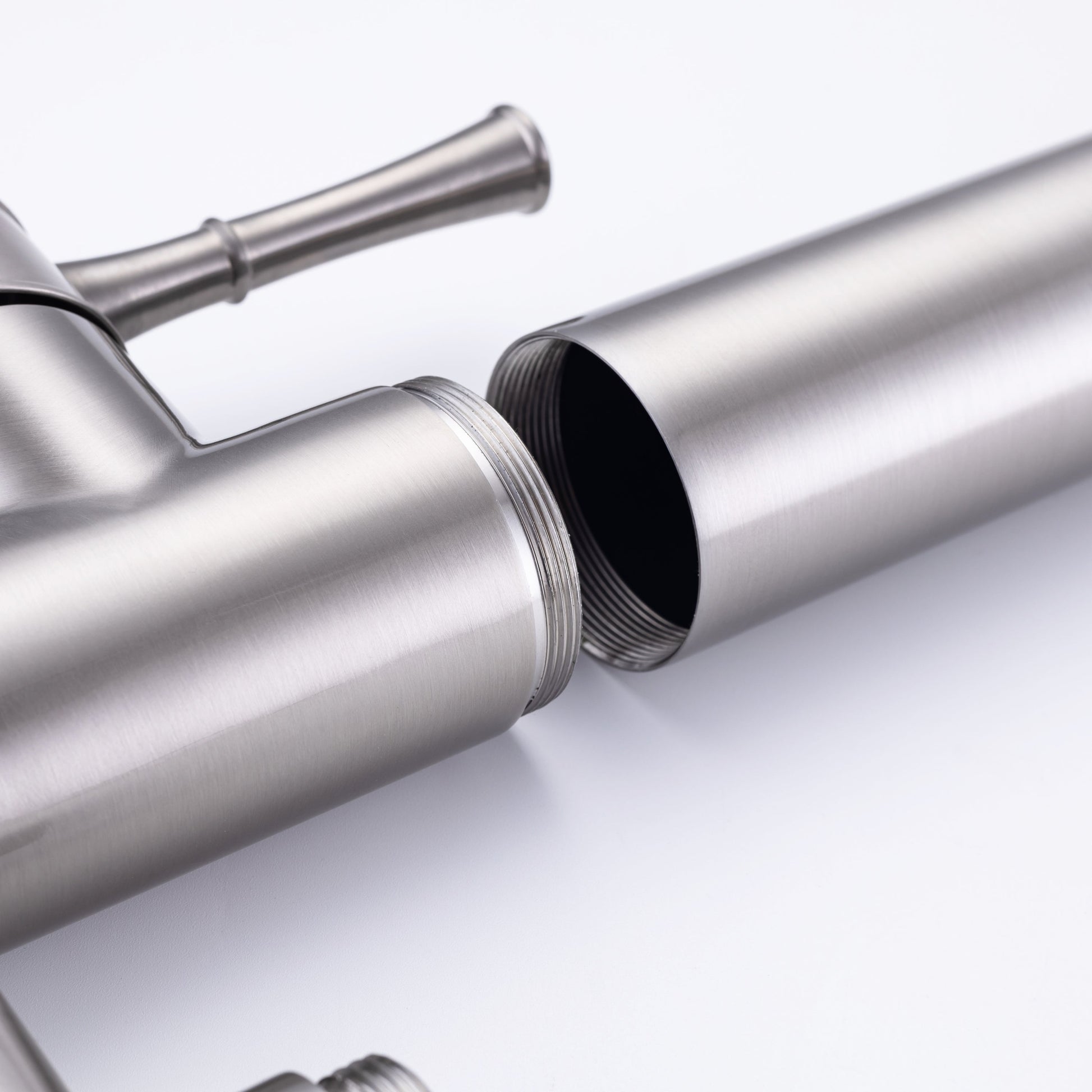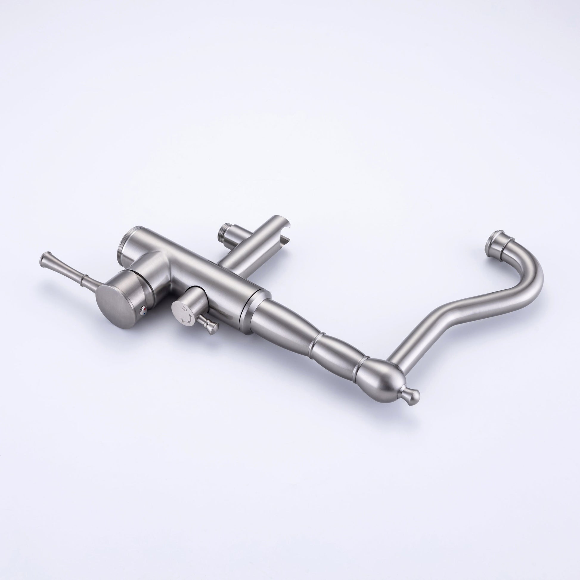 【Freestanding tub faucet diverter reset automatically when turn off】When turn off water , the diverter would reset automatically to the spout mode. Next time you use the gorgeous free standing tub filler, water would come out of the spout instead of handheld shower, avoiding getting sprayed on your face by the handheld shower. 【Long hose design for the floor mount bathtub faucet 】The handheld shower with 59'' long stainless steel hose, gets to every part of the tub to clean. 【Easy to install】You would get all you need to install the freestanding bathtub faucet, no need to buy rough-in. With clear instructions included in the package, you can install easily and get a stable bathtub filler with 9.84'' long swivel spout, handy sprayer, good water pressure. 【Great quality and classic design】The free standing faucet is made of quality brass and is extremely solid and heavy. Besides, our customers love the roman, elegant, vintage and classic look so much and say that it's even prettier in person. Available in four colors,including matte black, brushed nickel, chrome and oli-rubbed bronze. 【Note】Make sure your water supply could be 1.18-1.57'' below the finished floor. If you have any question, feel free to contact our frendly customer service.