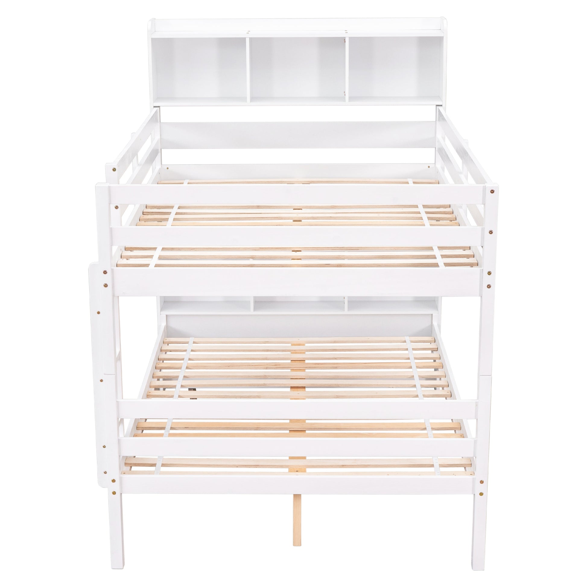 Full Over Full Bunk Beds with Bookcase Headboard, White