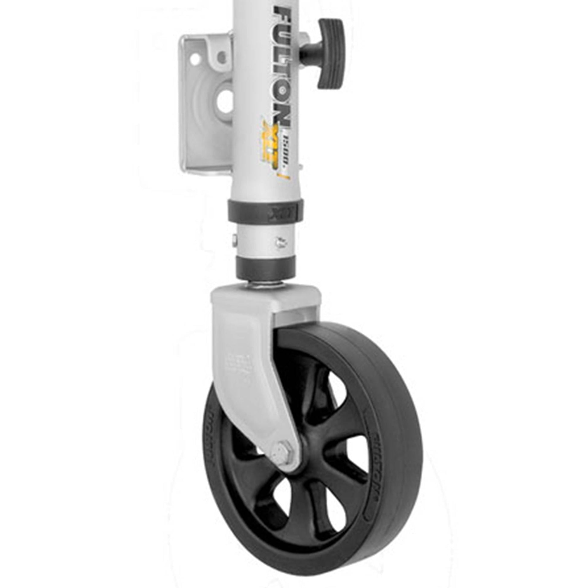 Advance your trailer setup with the Fulton 12-inch Travel Weld On Swing Away XLT Trailer Jack with Sharkskin Finish.
