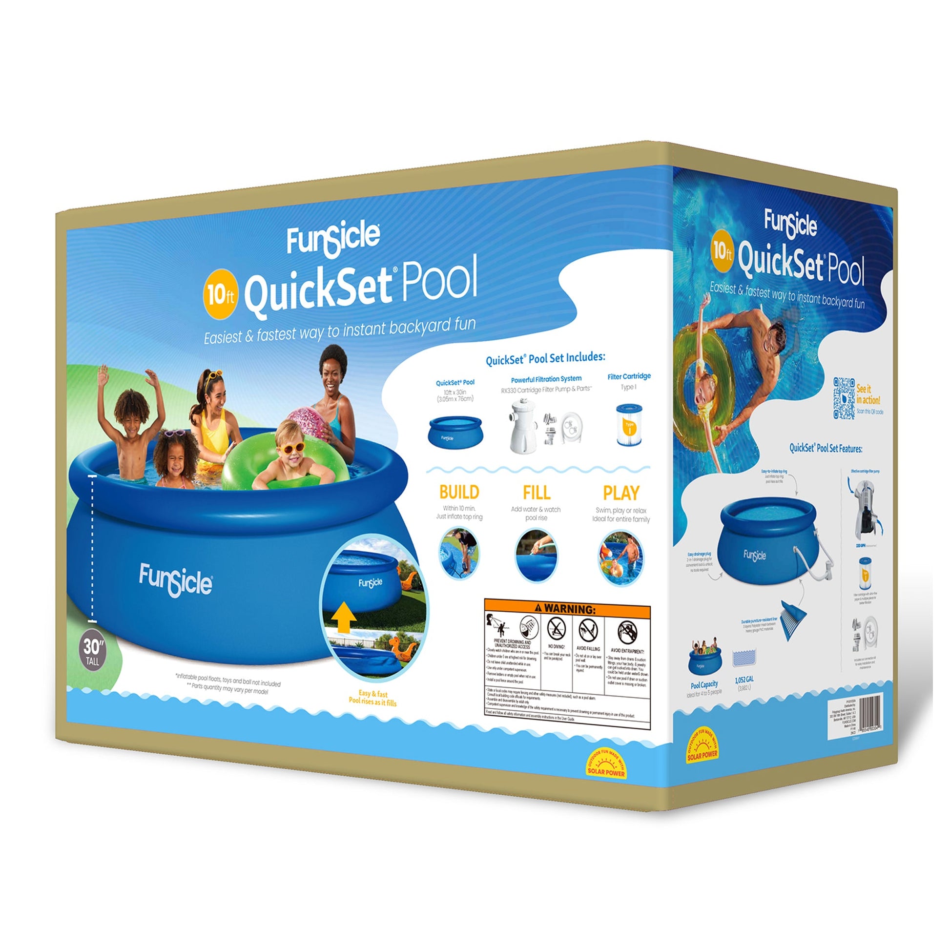 Get ready for the warm weather and endless hours of water fun in your own backyard with the QuickSet Inflatable Above-Ground Swimming Pool from Funsicle. With an included filter pump, you'll be able to spend more time splashing in the water and less time cleaning it.
